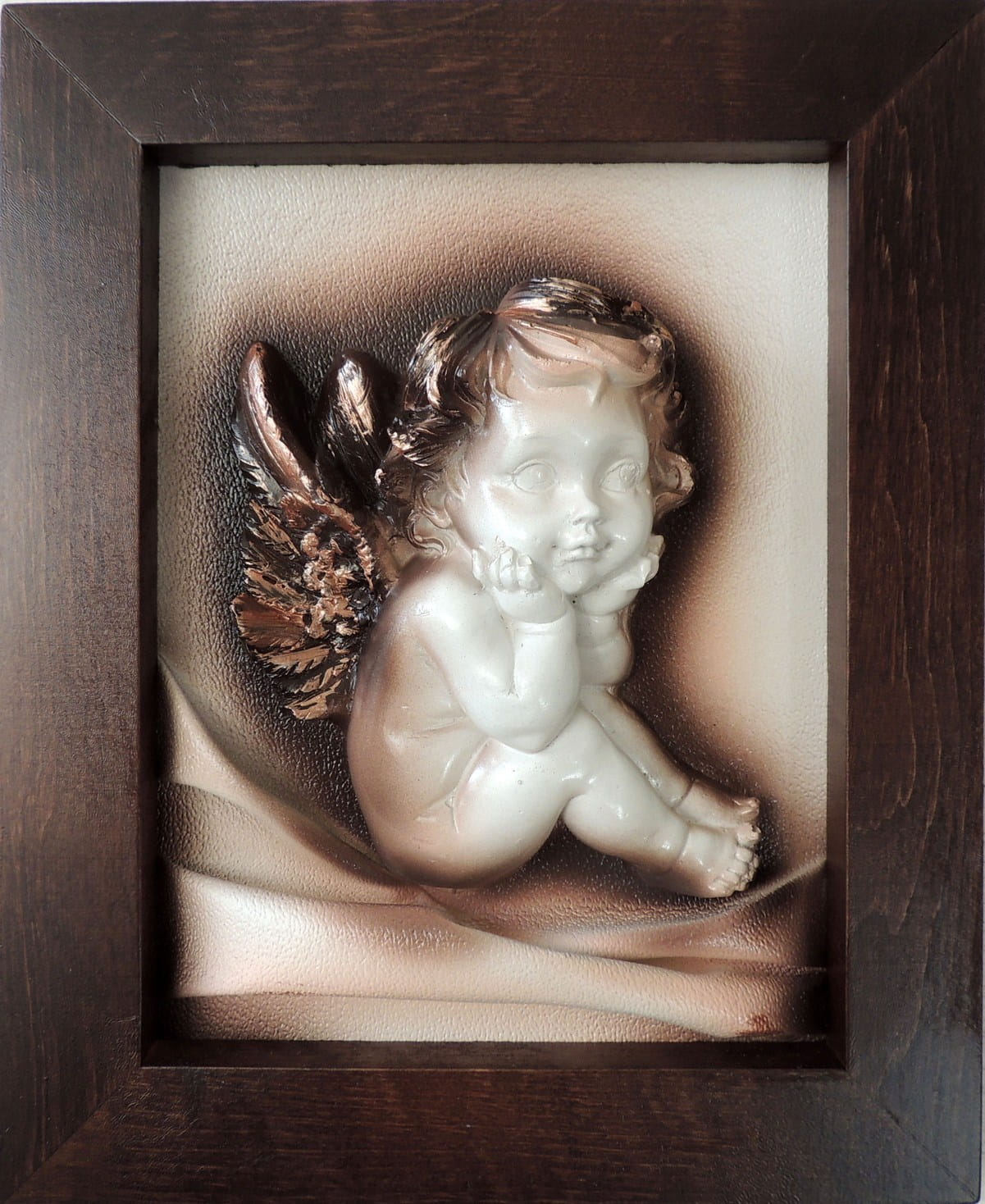 - Obraz z Świętą Rodziną w kolorystyce brąz - bronzo - skóra naturalna - SR5-19