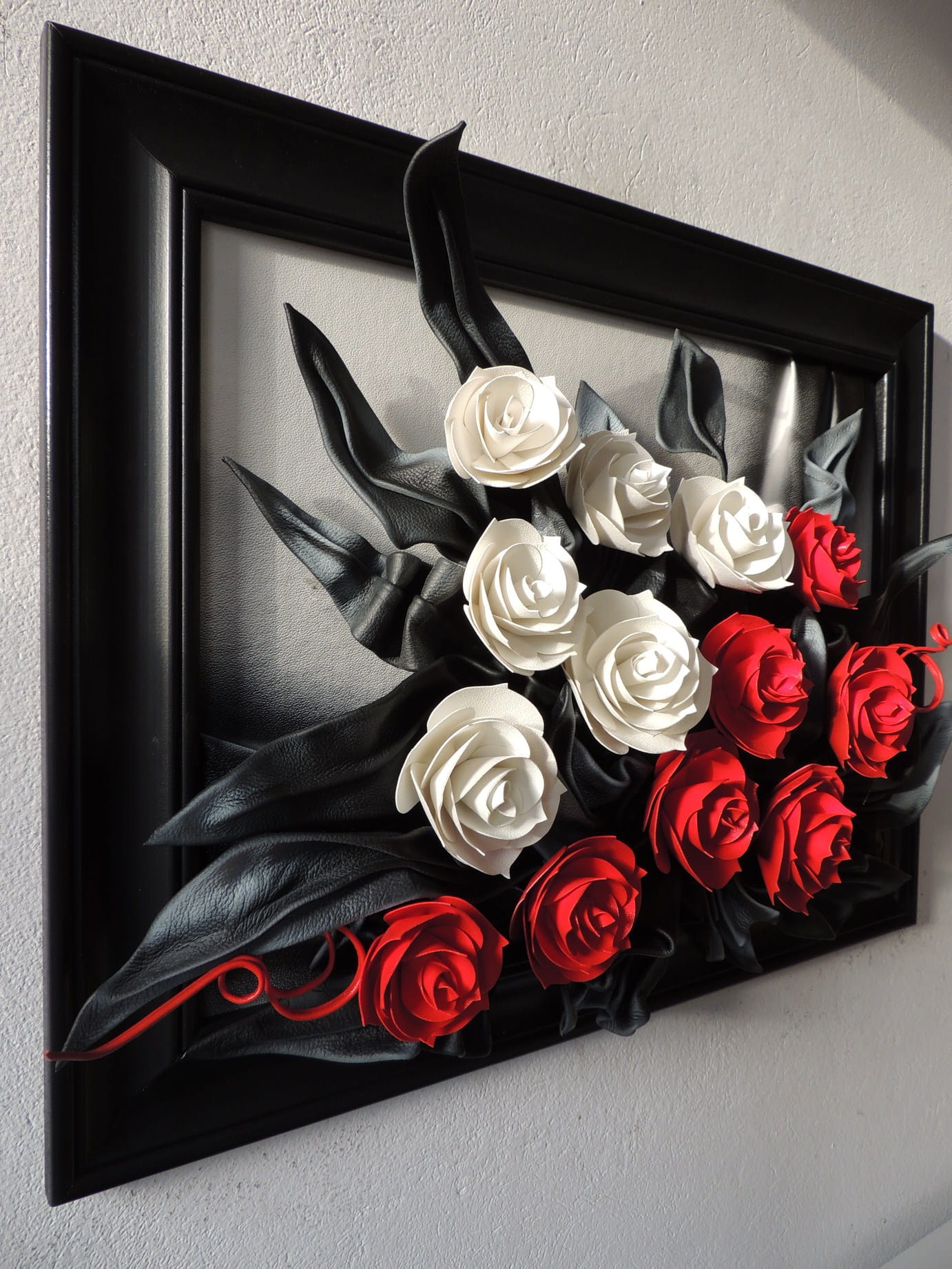 Obraz ze skóry w czarnej ramie