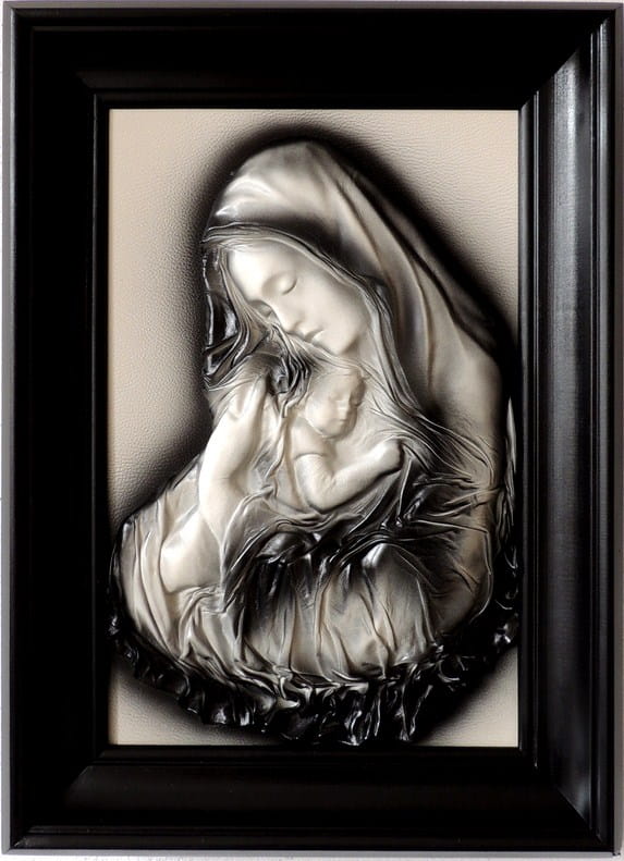CZARNO-BIAŁY OBRAZ ZE SKÓRY "MATKA BOŻA" S5-3