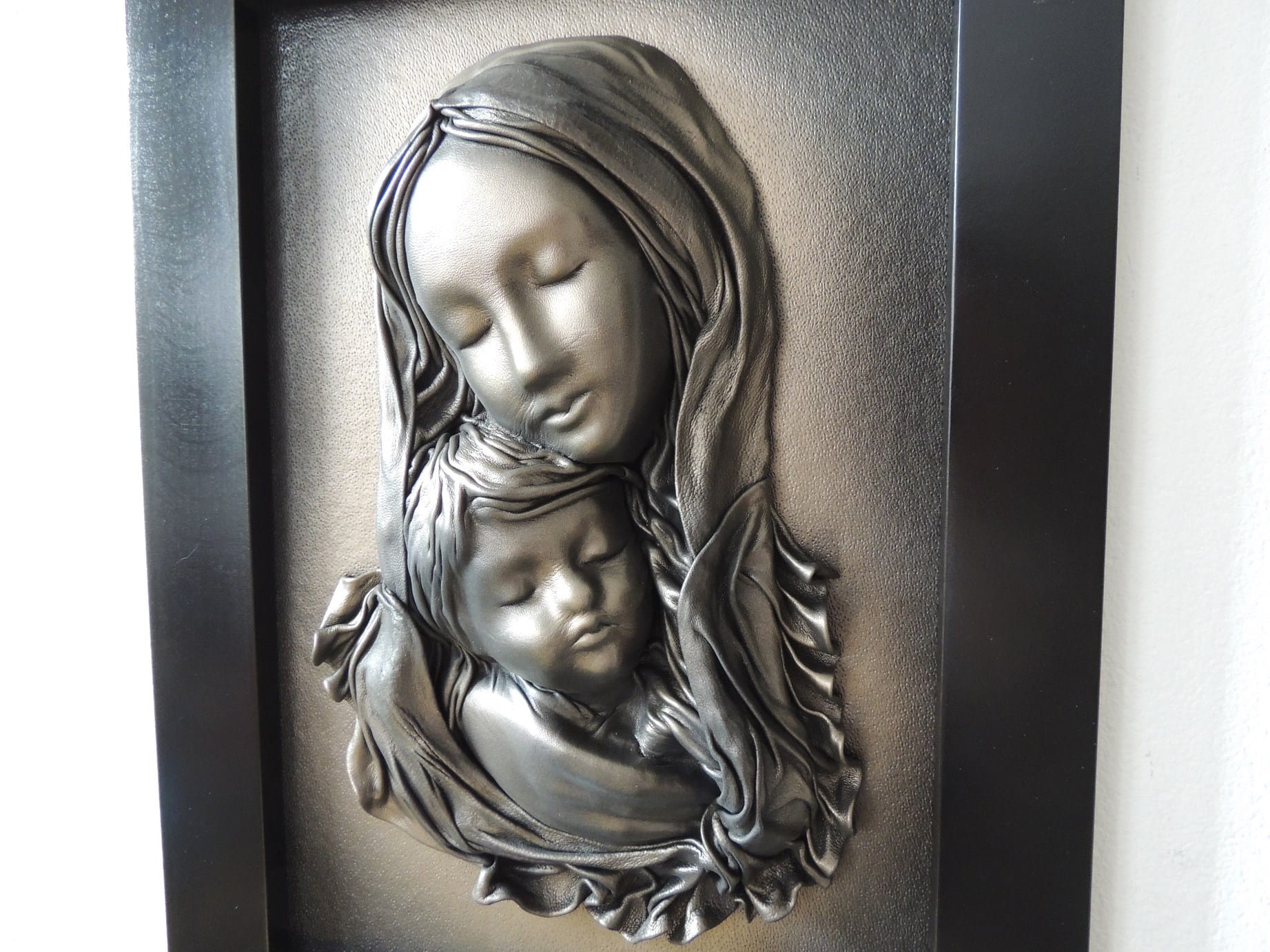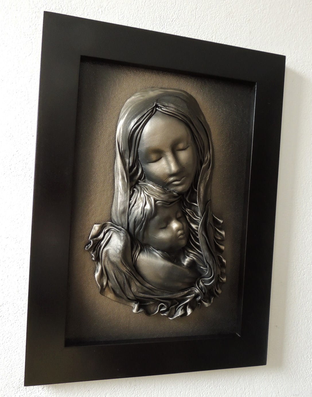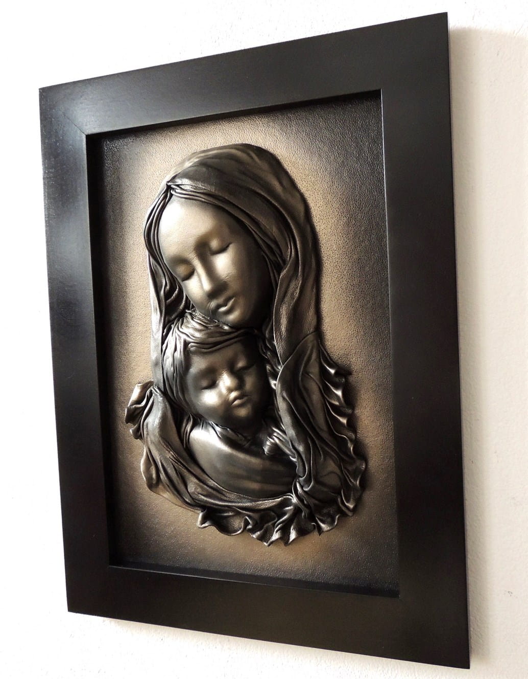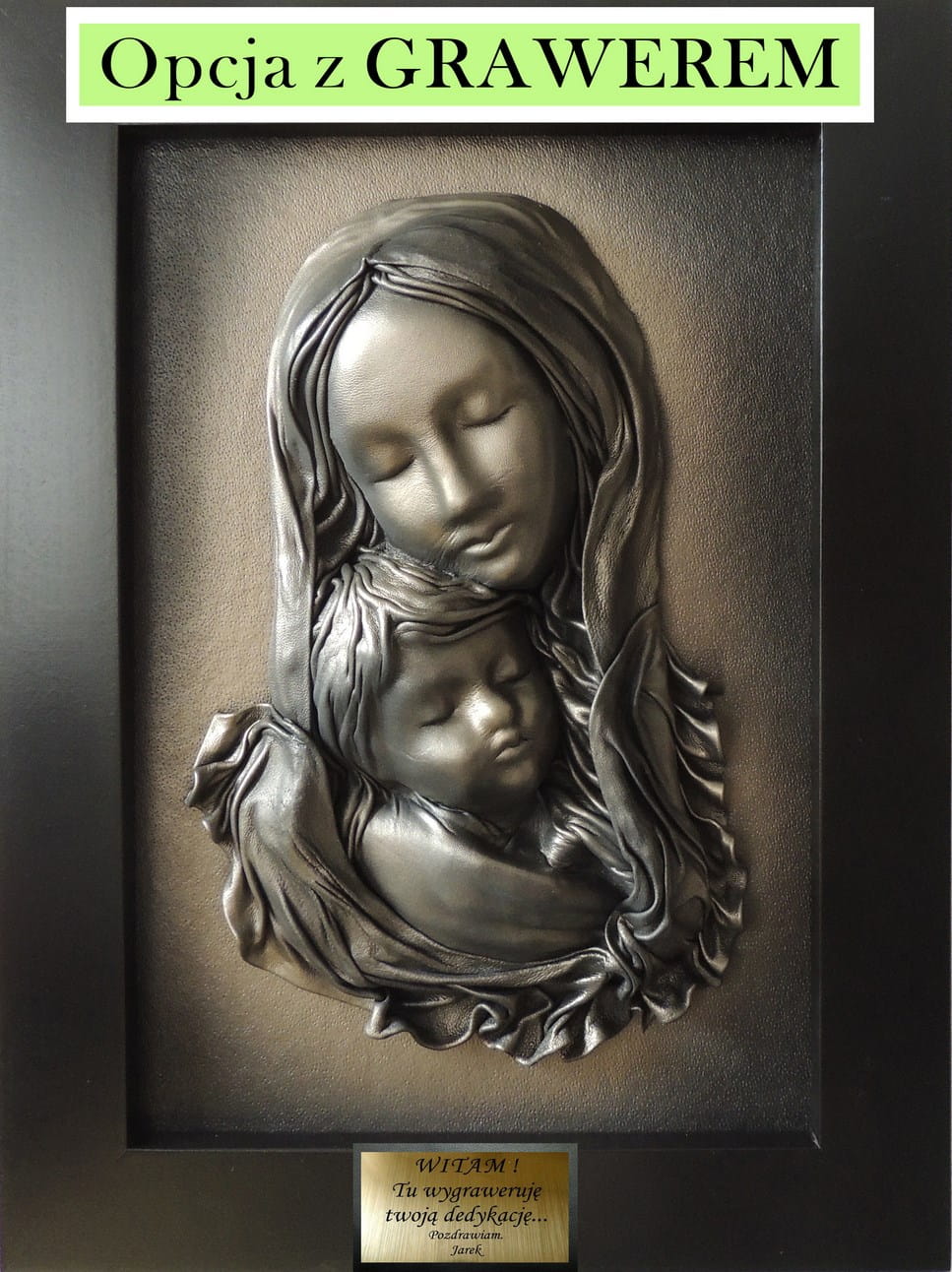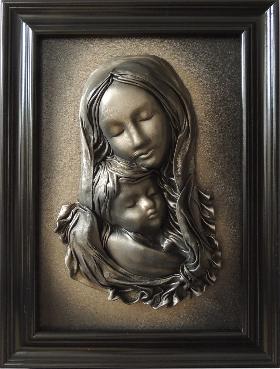 Czarno mosiężny obraz z Matką Bożą - na prezent - S3-16