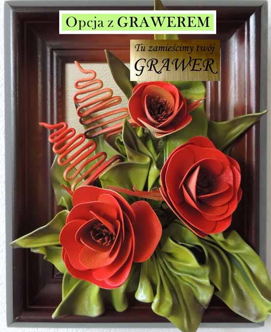 Czerwone Maki - obraz ze skóry na prezent dla dziewczyny - kobiety - mamy
