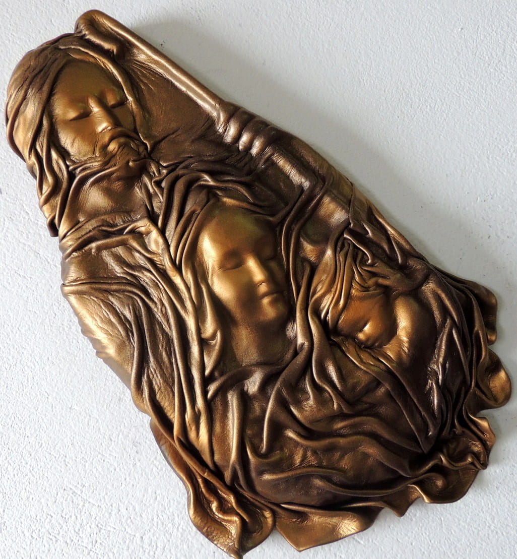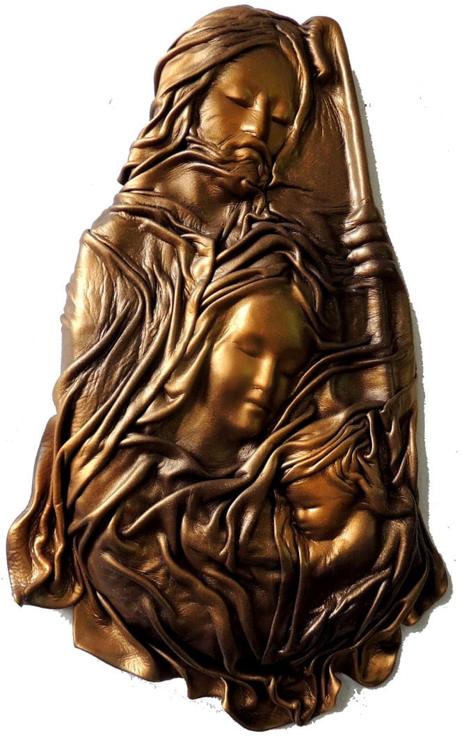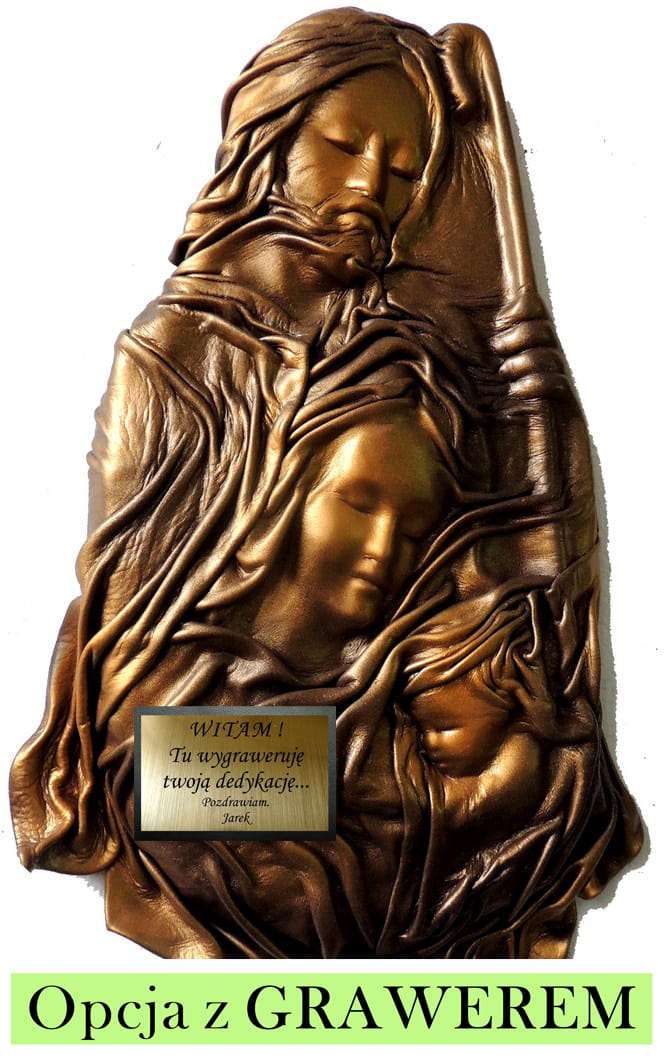 Płaskorzeźba ŚWIĘTA RODZINA w skórze