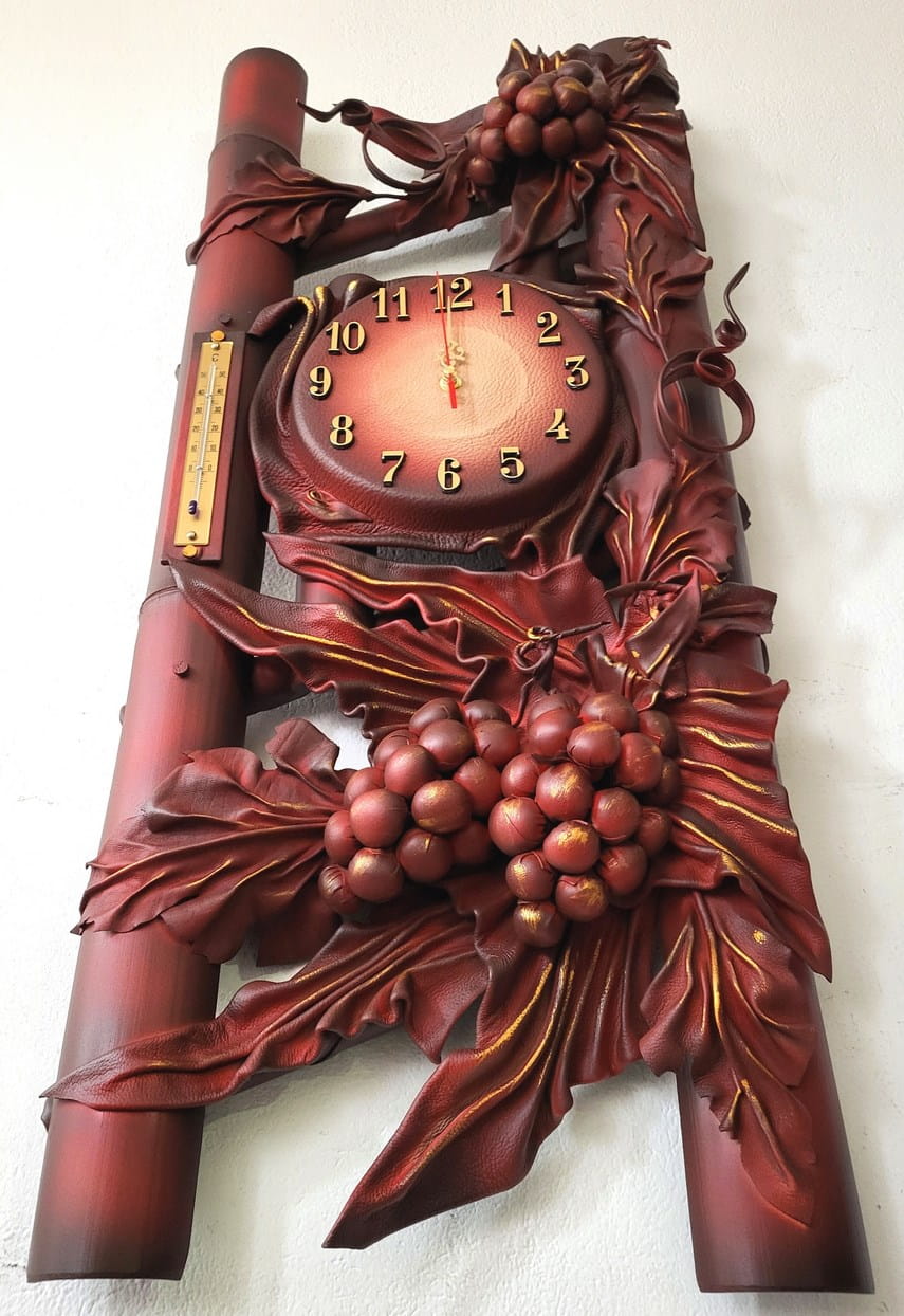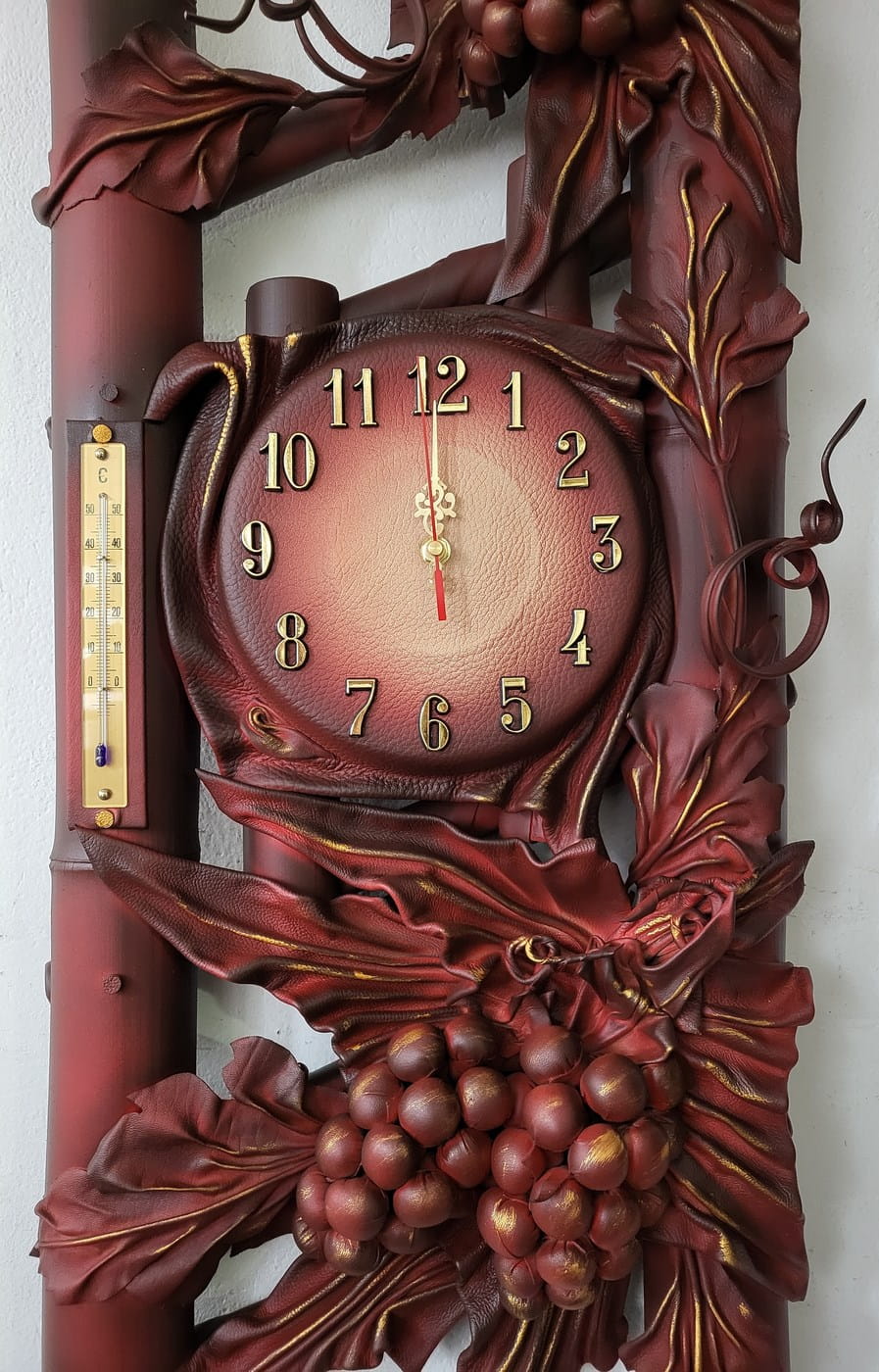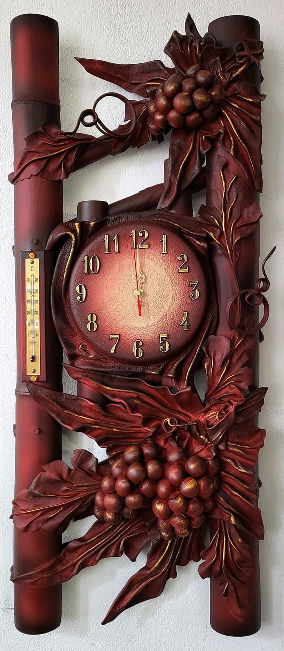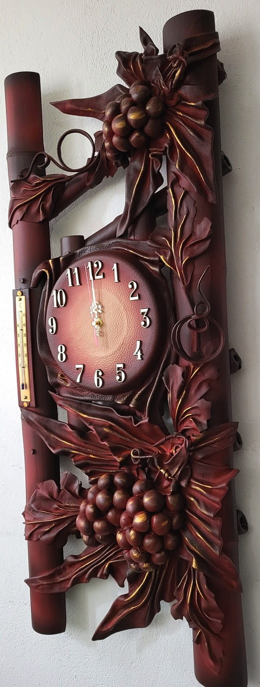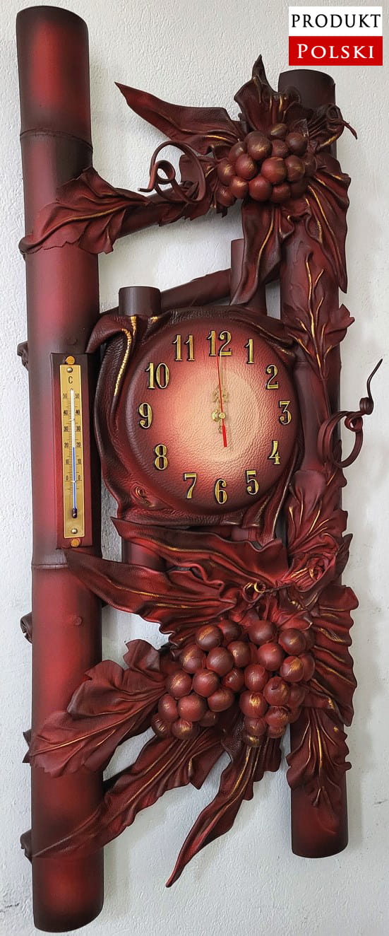 DUŻY I PIĘKNY ZEGAR ŚCIENNY ZE SKÓRY I BAMBUSA - B15T-1
