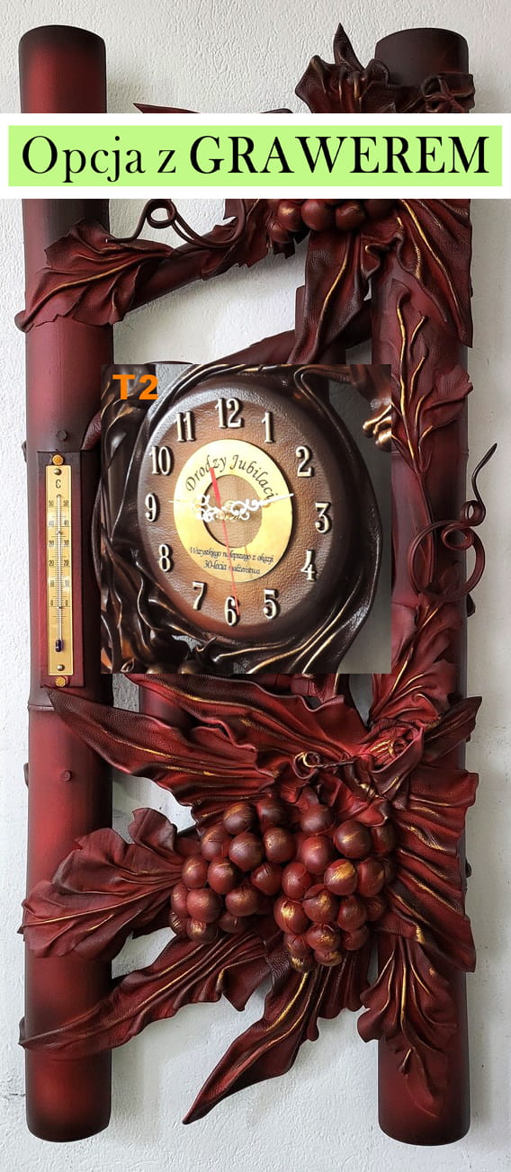 - ZEGAR ZE SKÓRY - BAMBUS - TERMOMETR - B17T-2