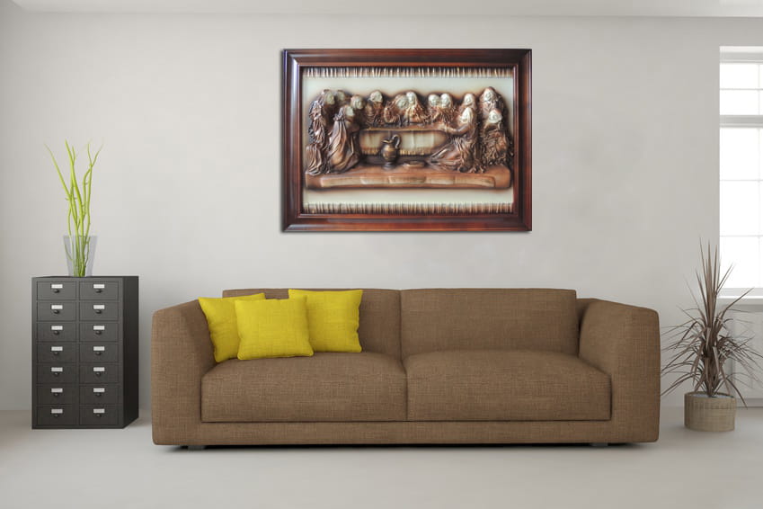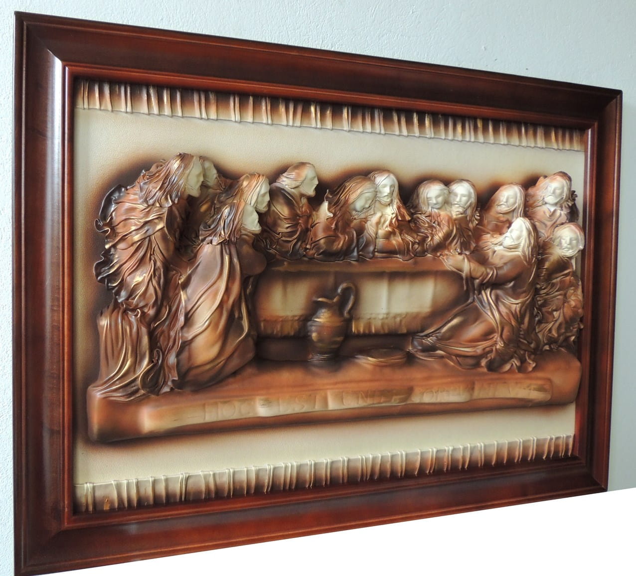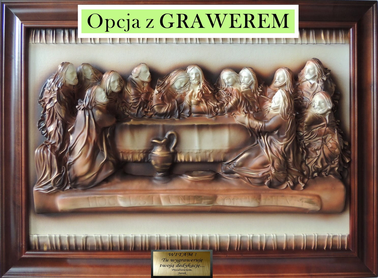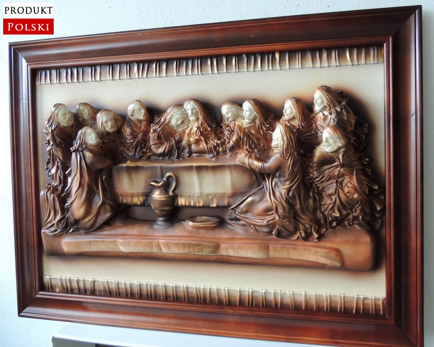 Duży obraz OSTATNIA WIECZERZA w drewnianej ramie koloru orange NA JUBILEUSZ - S8-12