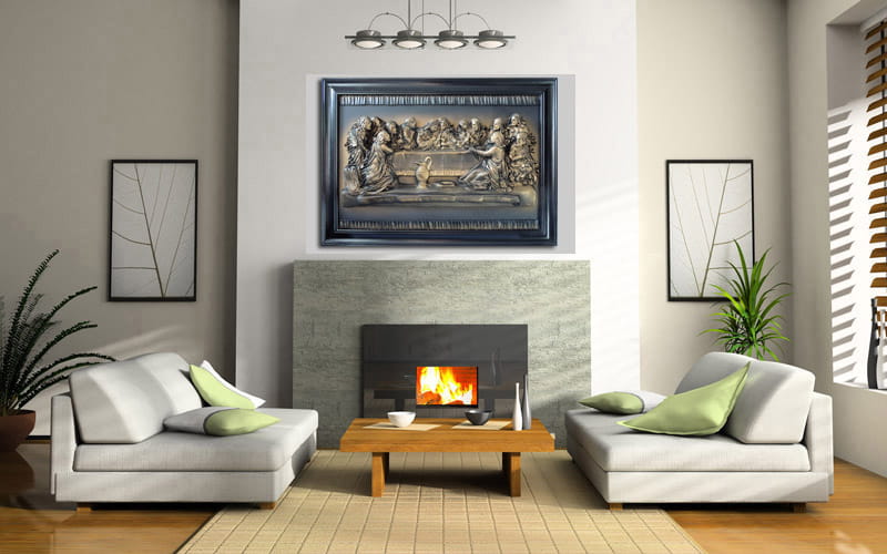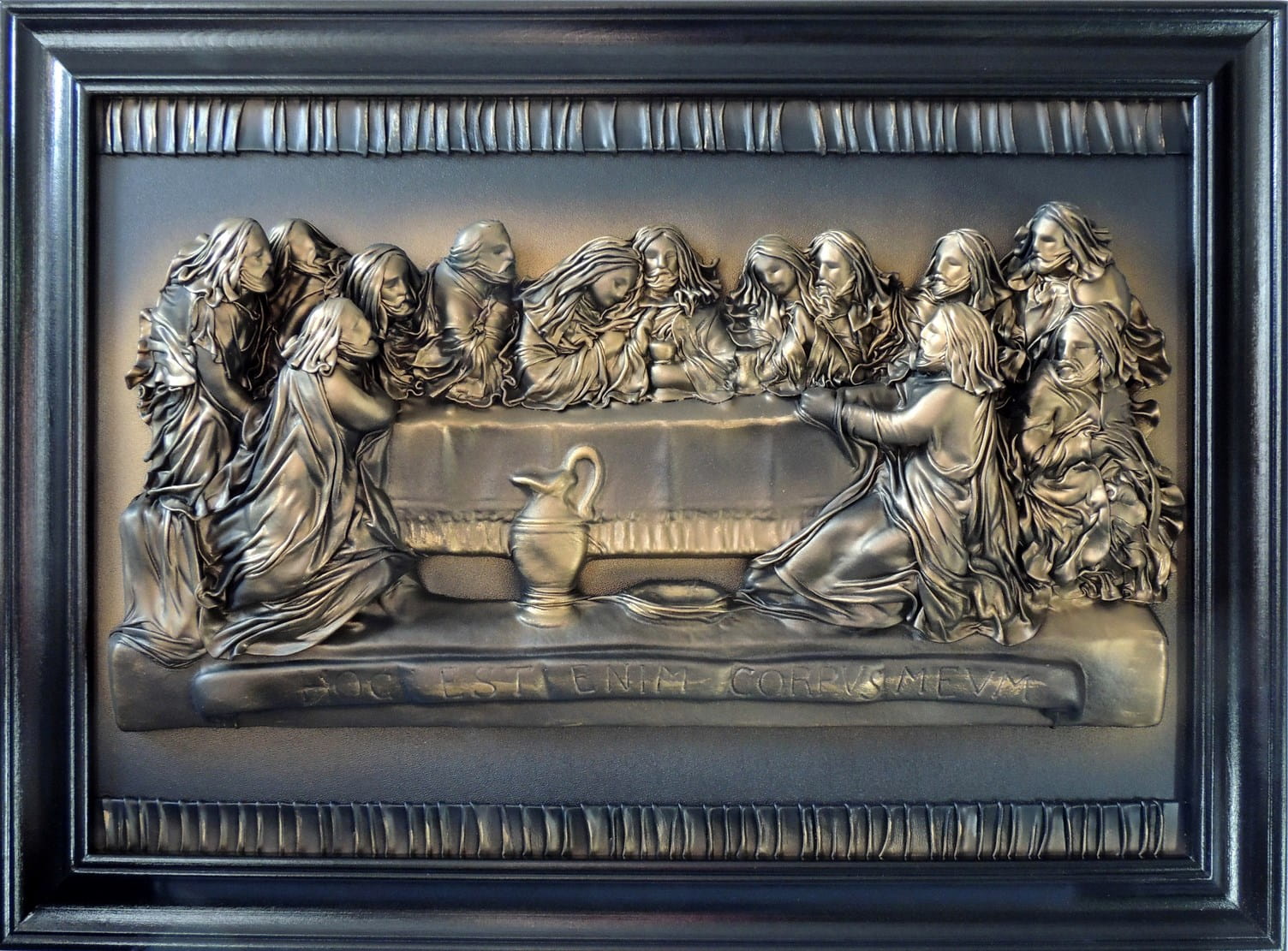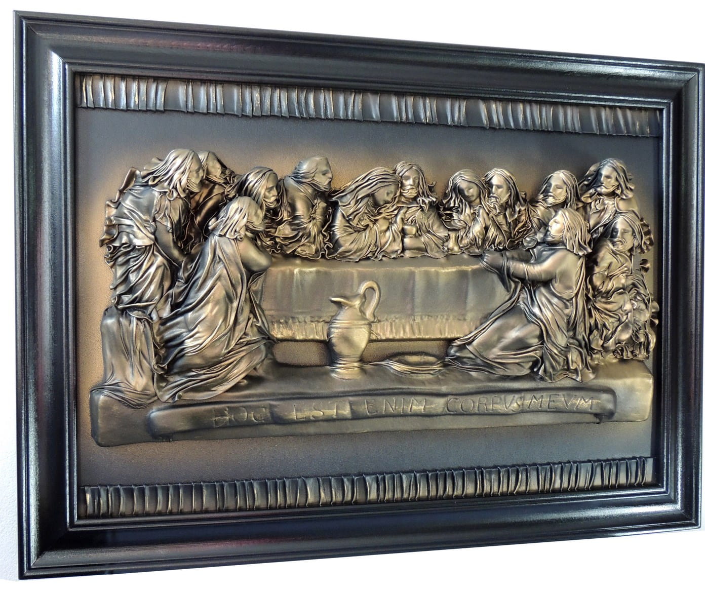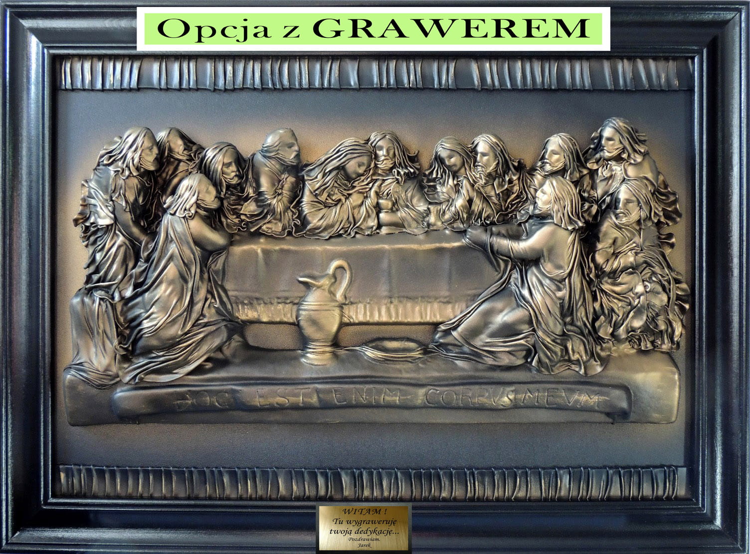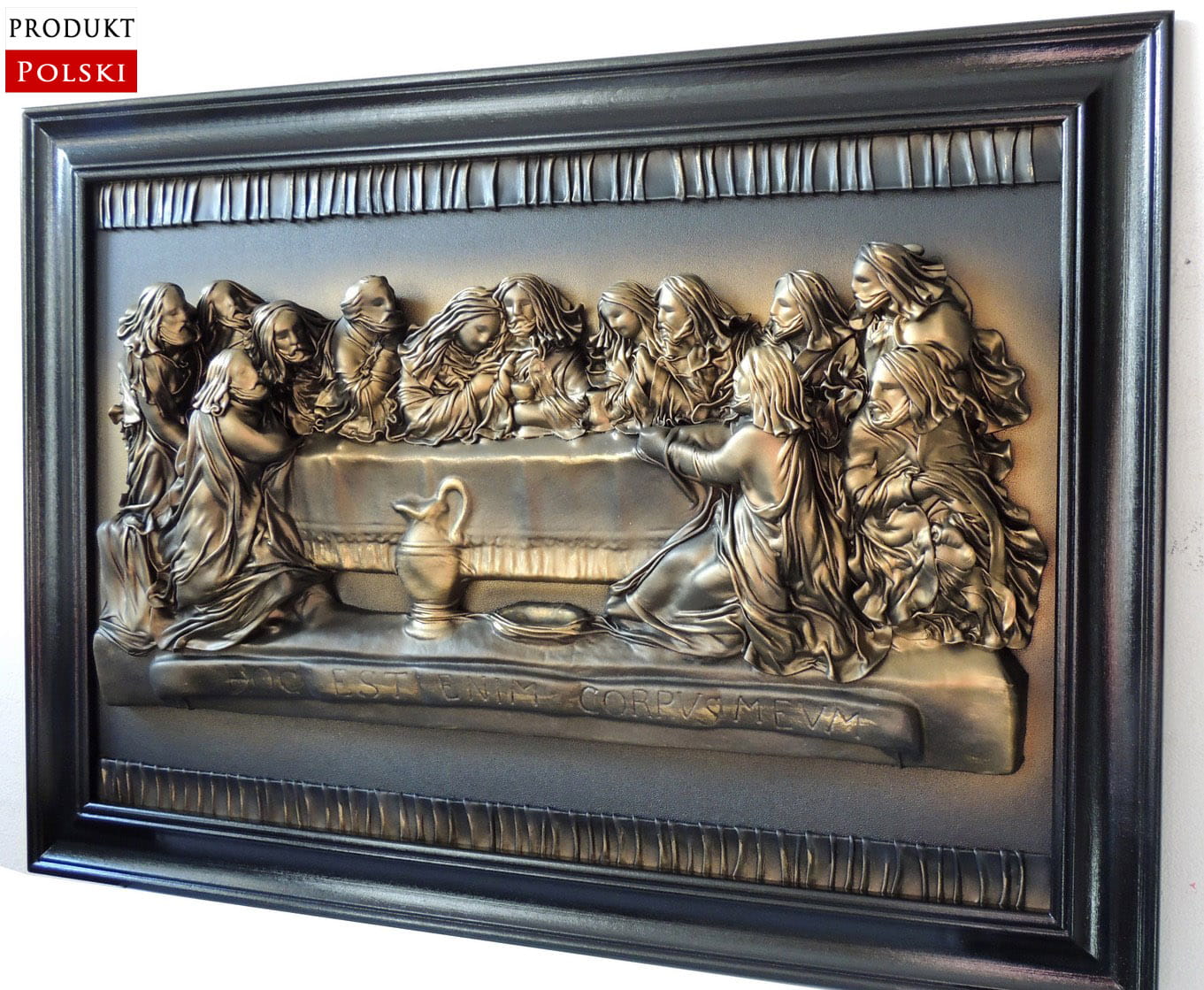 Duży obraz Ostatnia Wieczerza - czarno - mosiężny w drewnianej ramie s8-7