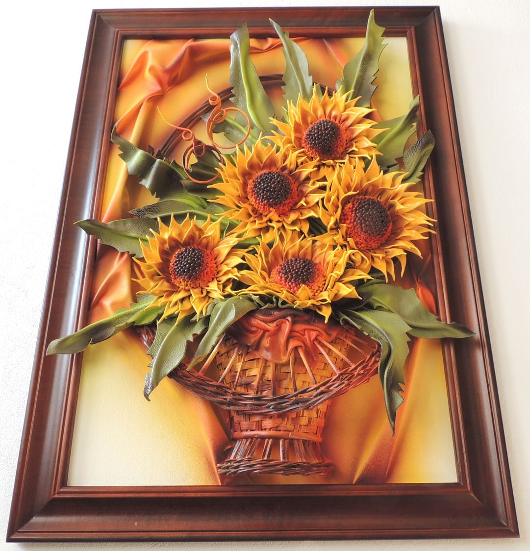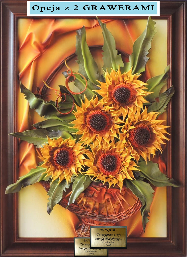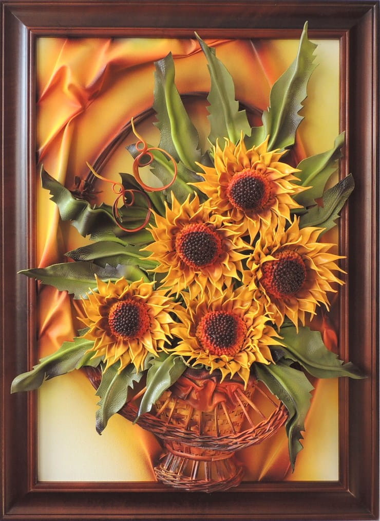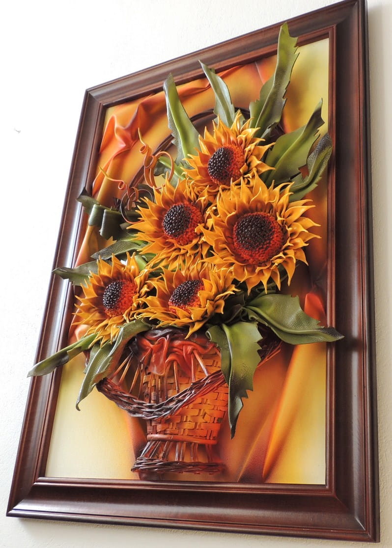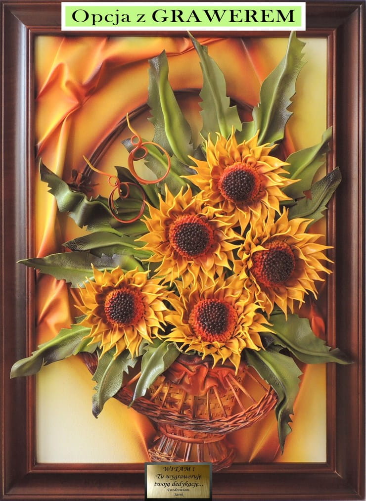 Słoneczniki w koszu - Obraz wykonany ze skóry