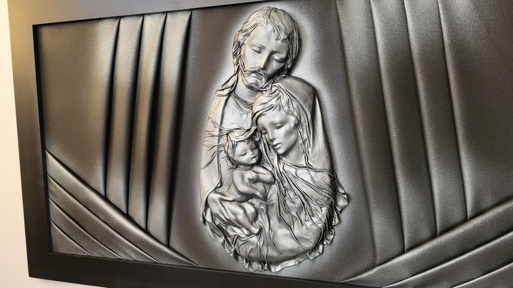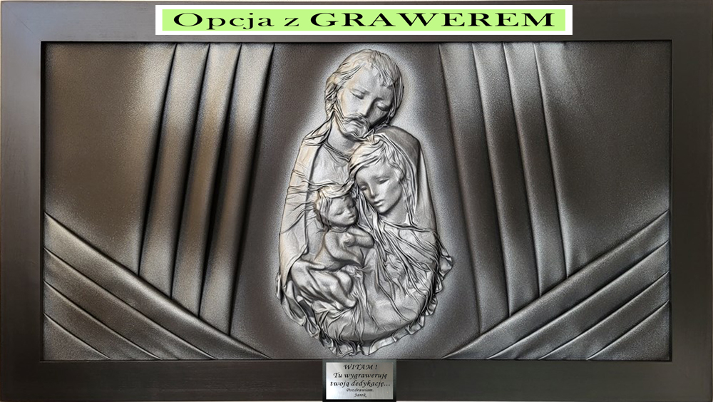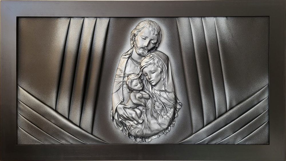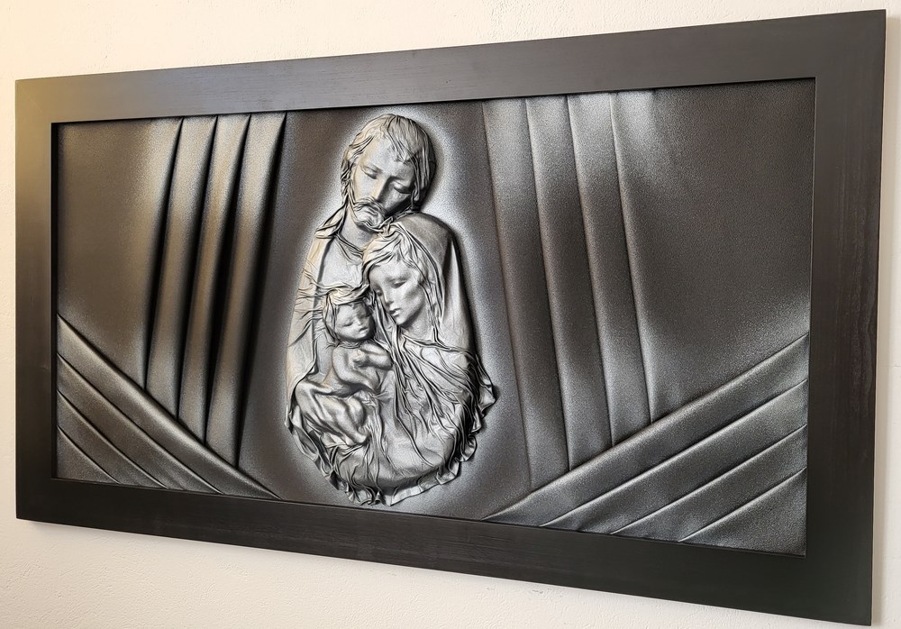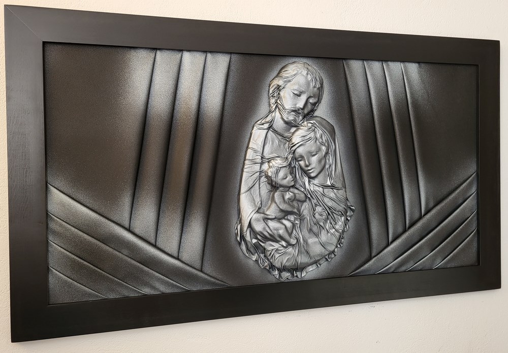 Duży obraz z płaskorzeźbą SWIĘTEJ RODZINY na prezent z okazji jubileusz 25-lecia ślubu SREBRNE GODY