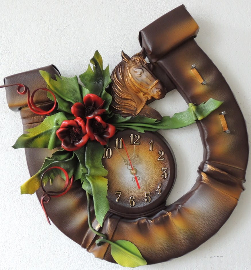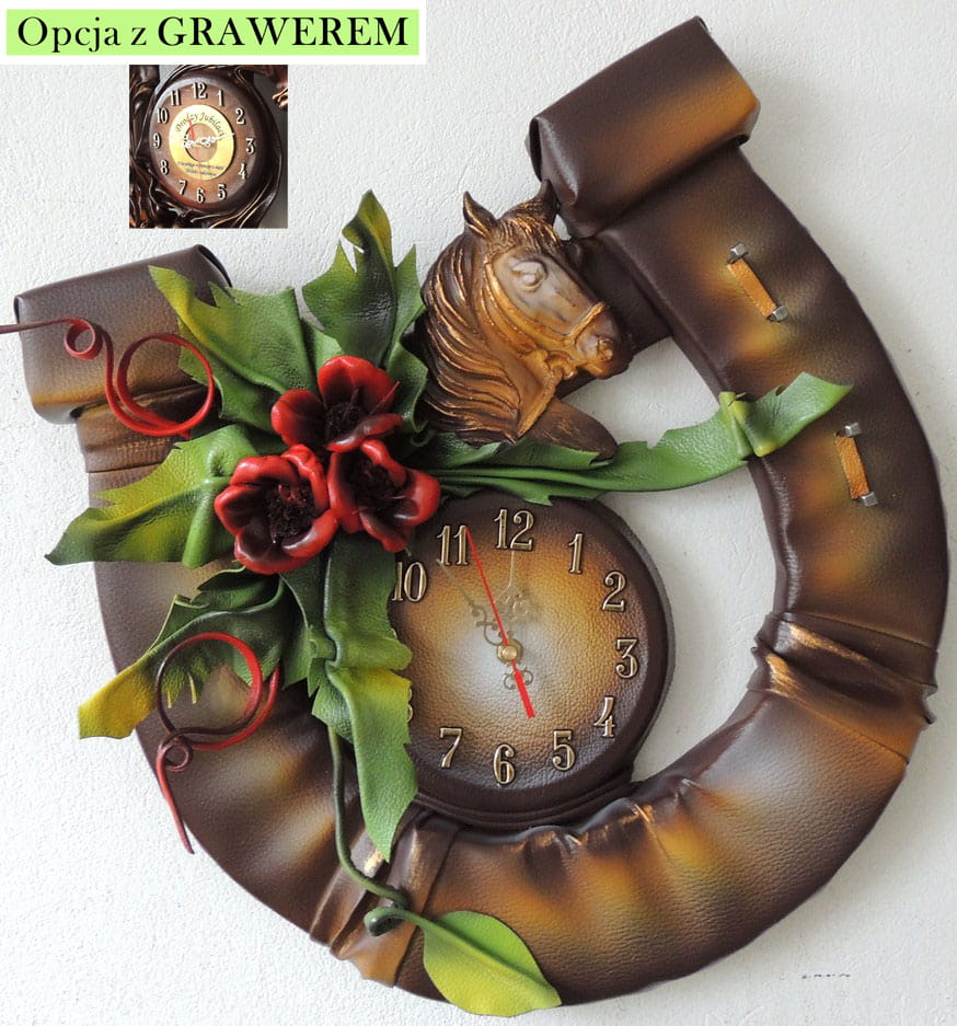 Duży zegar w podkowie - CZERWONE MAKI - PZDK-3