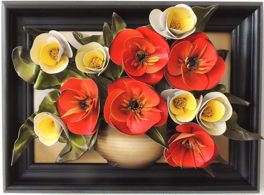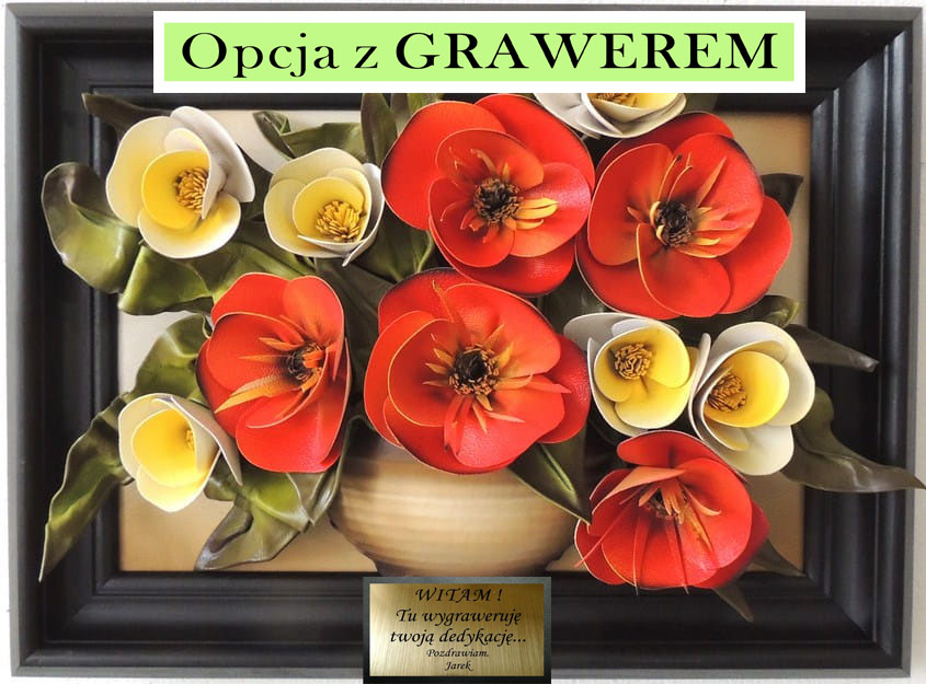 Kwiaty w wazonie - rękodziło ze skóry - prezent dla kobiety na JUBILEUSZ emeryturę URODZINY ...