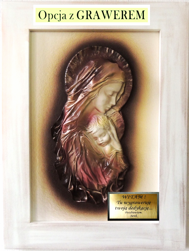 Na tle obrazu w jednym z narożników zamieszczamy złotą tabliczkę z grawerem