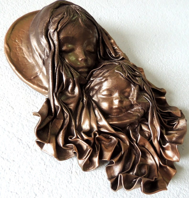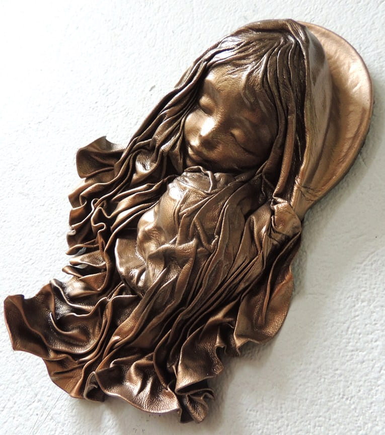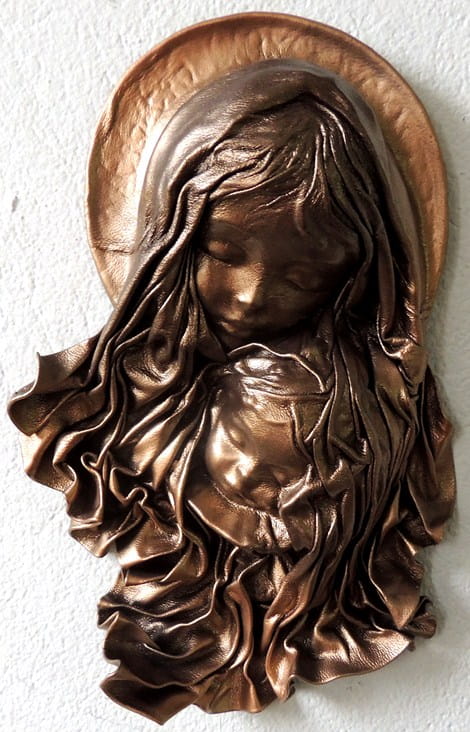 Płaskorzeźba w skórze MARYJA Z DZIECIĄTKIEM