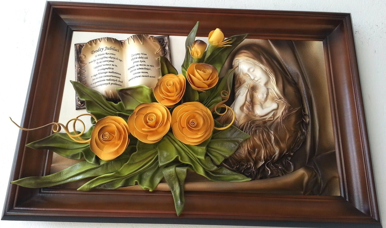 - Obraz z Świętą Rodziną w kolorystyce brąz - bronzo - skóra naturalna - SR5-19