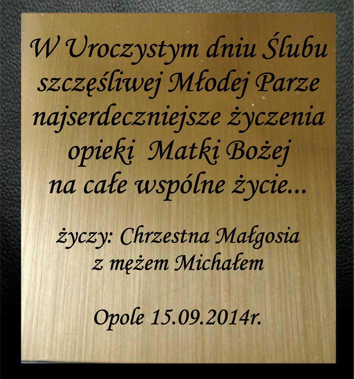 Na odwrocie płaskorzeźby zamieszczamy złotą lub srebrną tabliczkę z grawerem