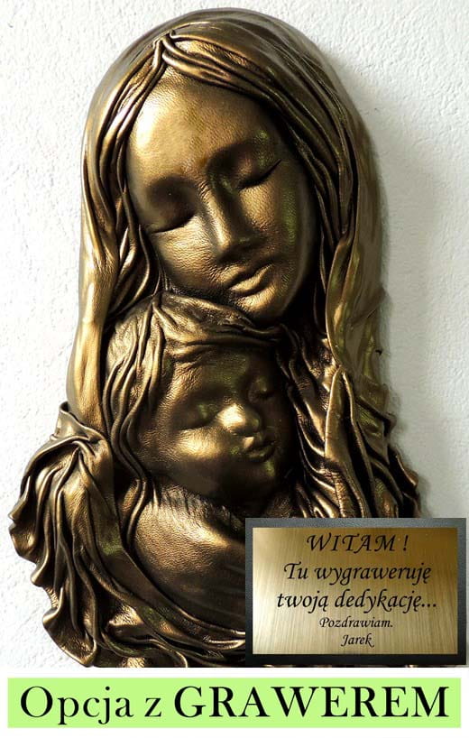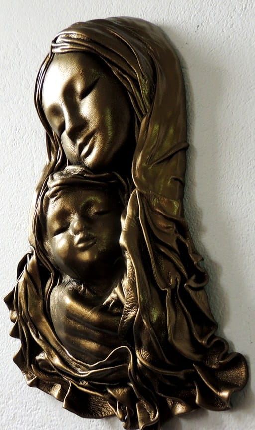 Płaskorzeźba ze skóry MARYJA Z DZIECIĄTKIEM
