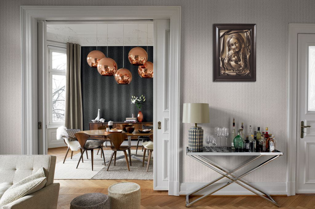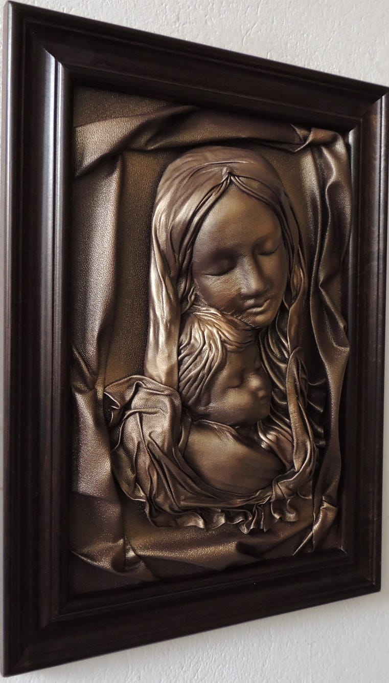 - Obraz z Świętą Rodziną w kolorystyce brąz - bronzo - skóra naturalna - SR5-19