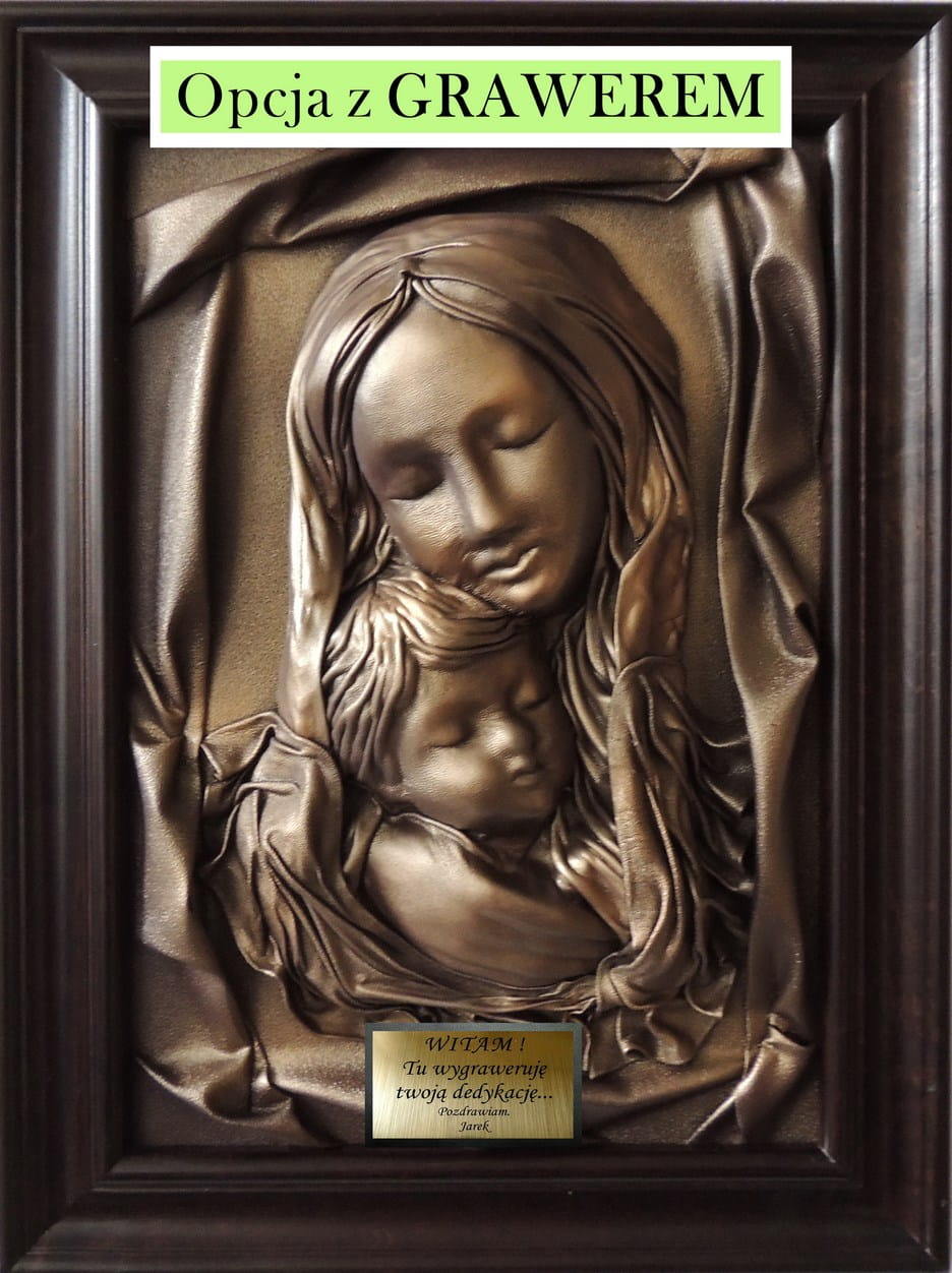 Na tle obrazu zamieszczamy złotą tabliczkę z grawerem