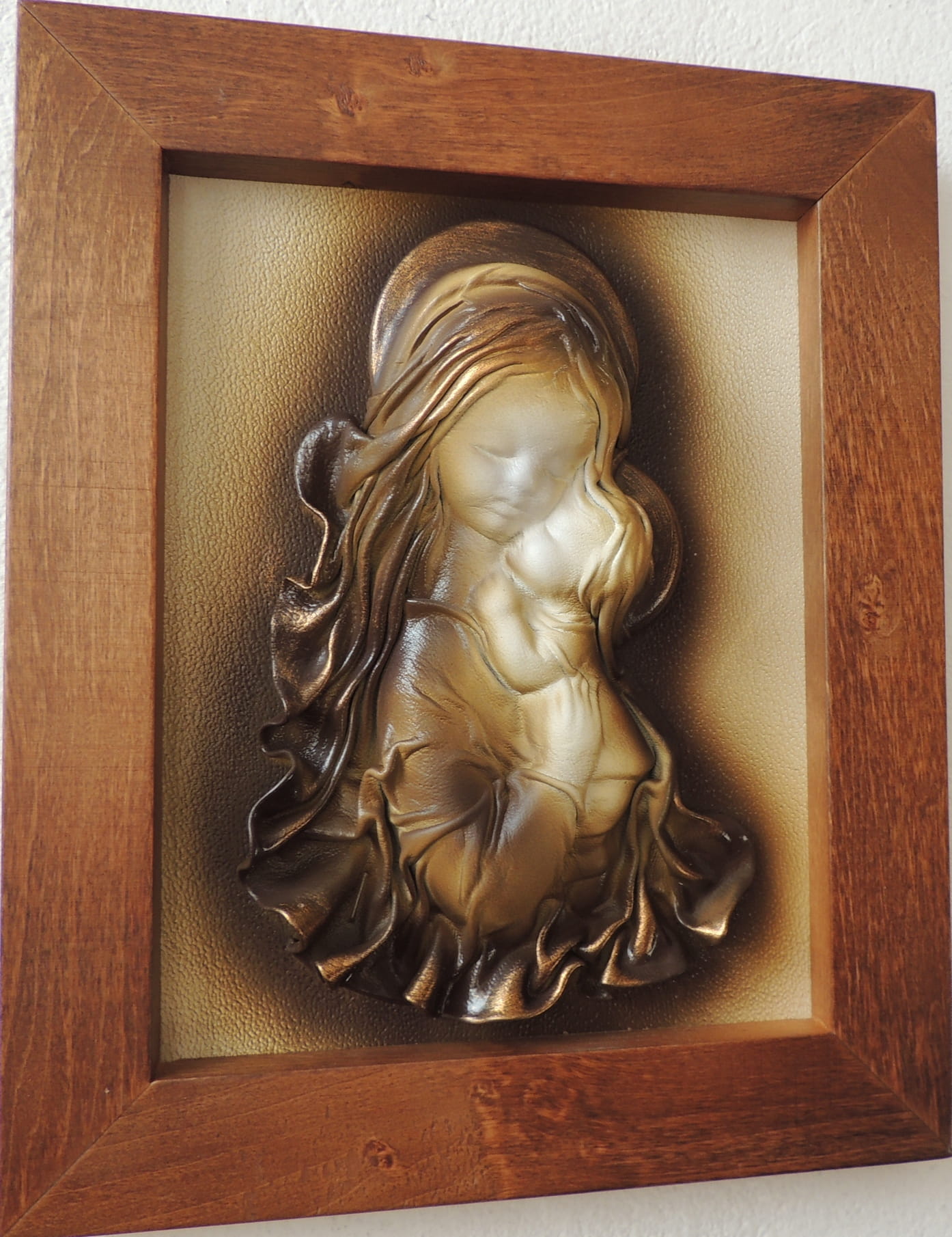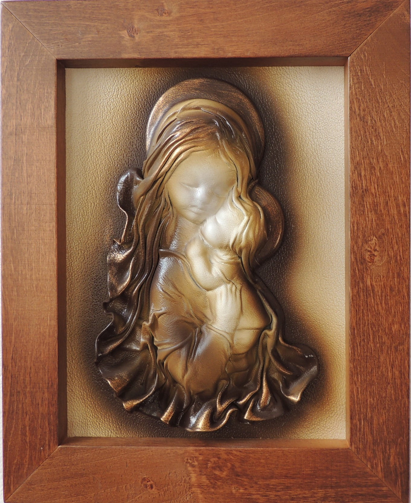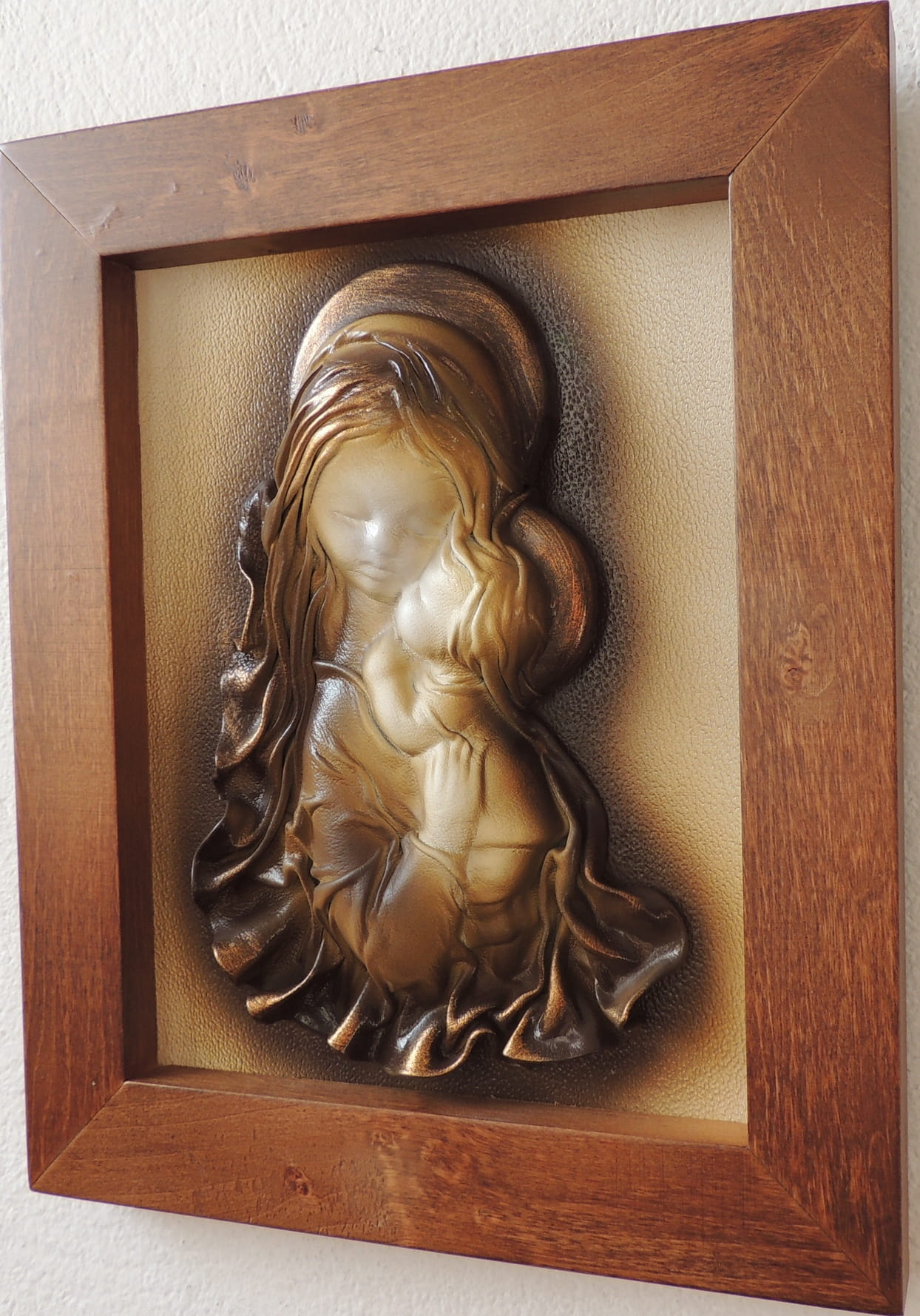 - Obraz z Świętą Rodziną w kolorystyce brąz - bronzo - skóra naturalna - SR5-19