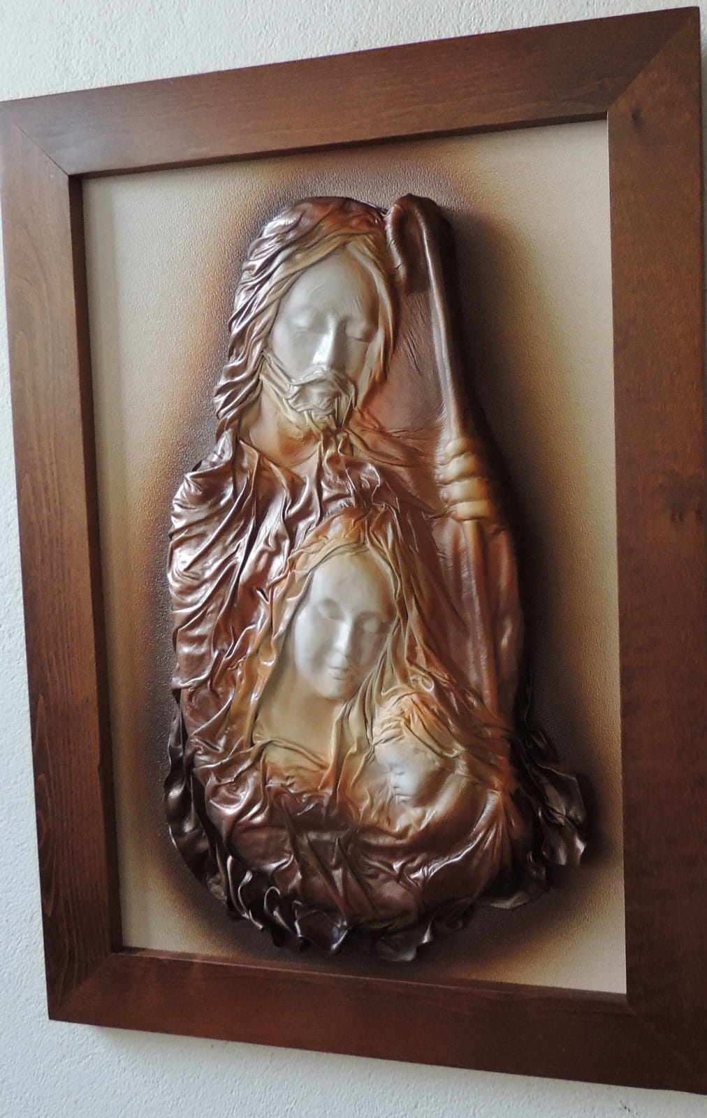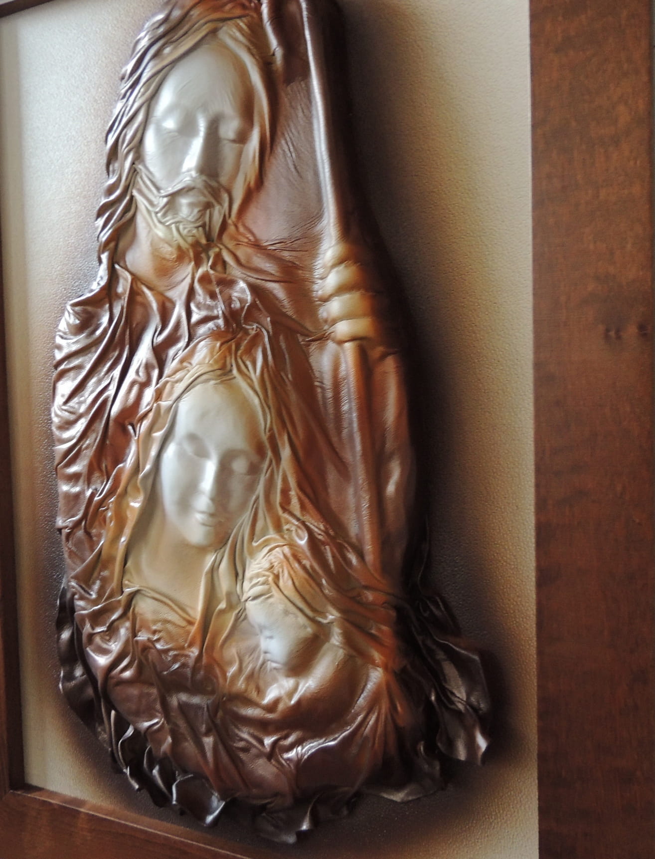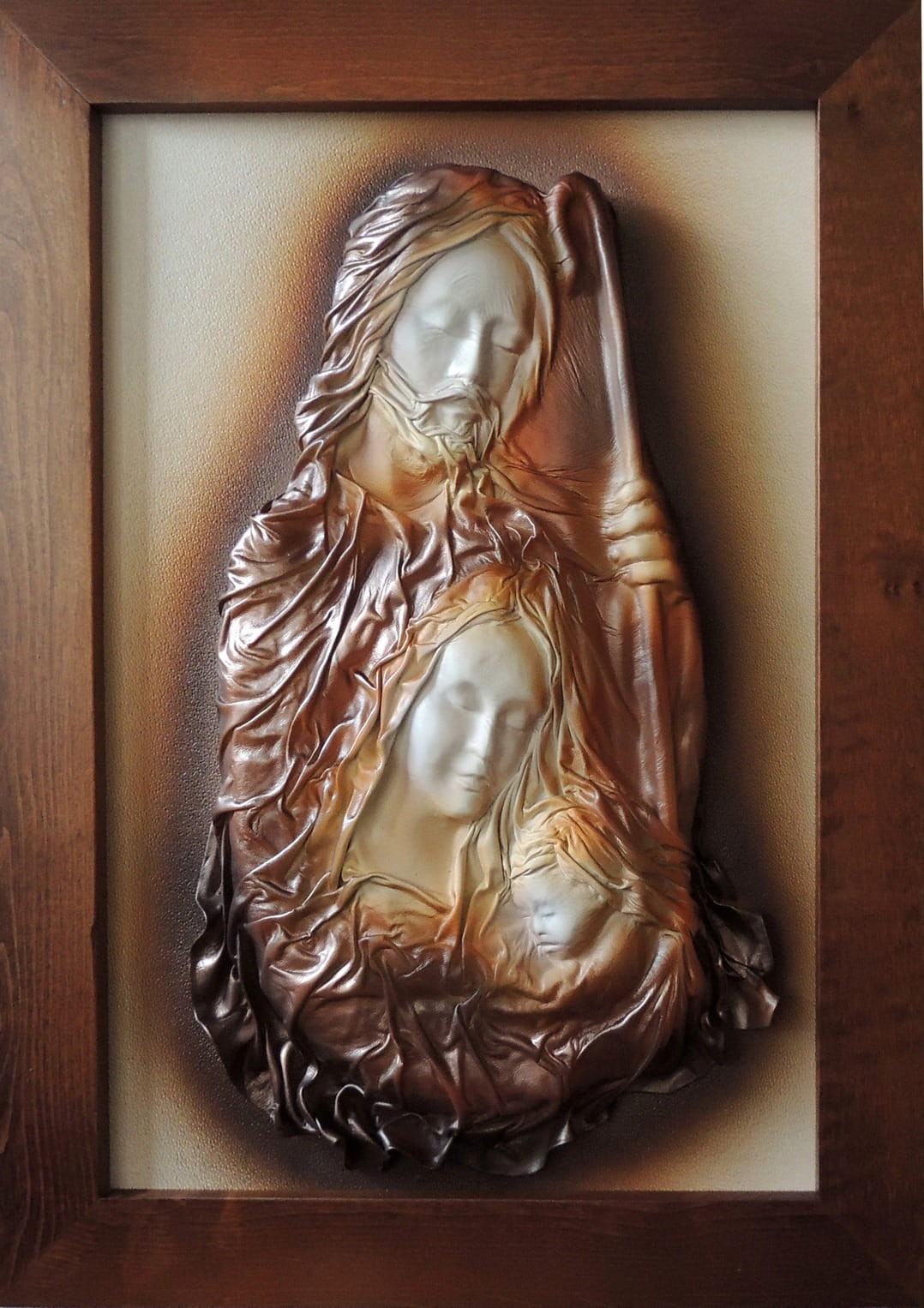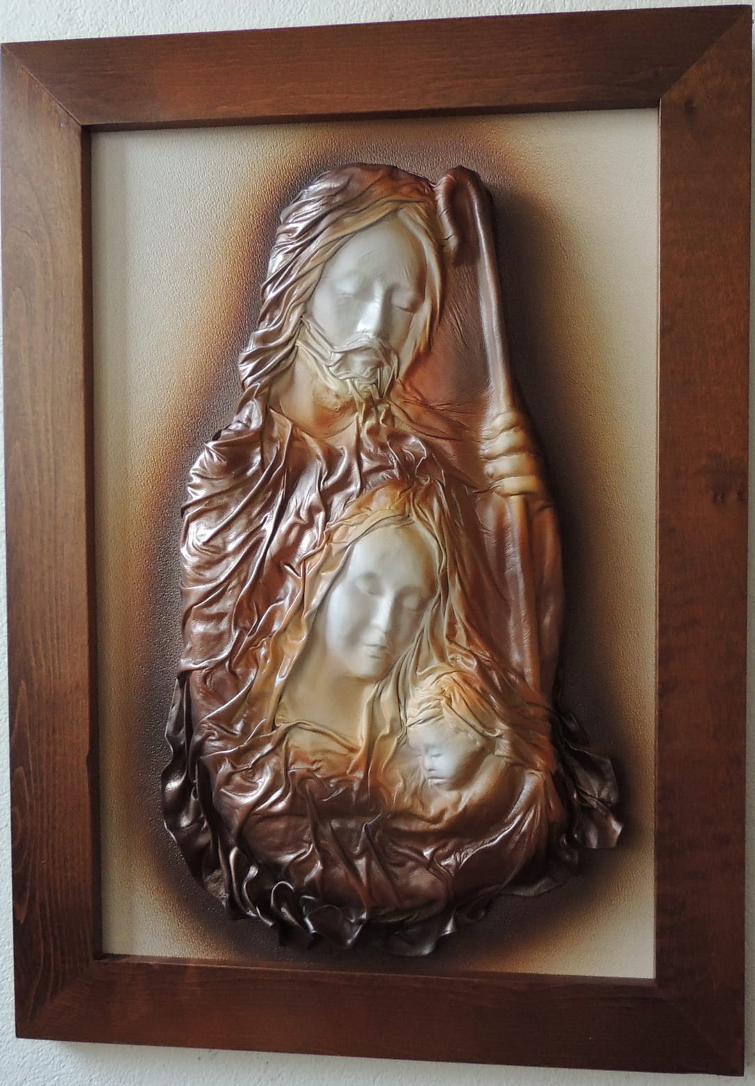 - Obraz z Świętą Rodziną w kolorystyce brąz - bronzo - skóra naturalna - SR5-19