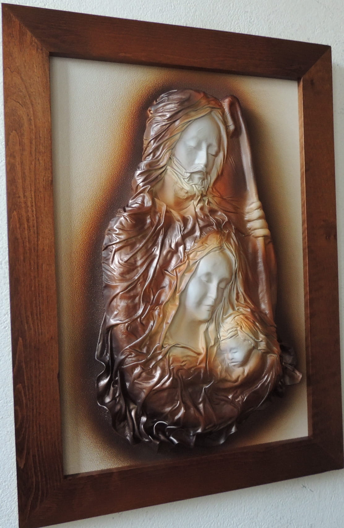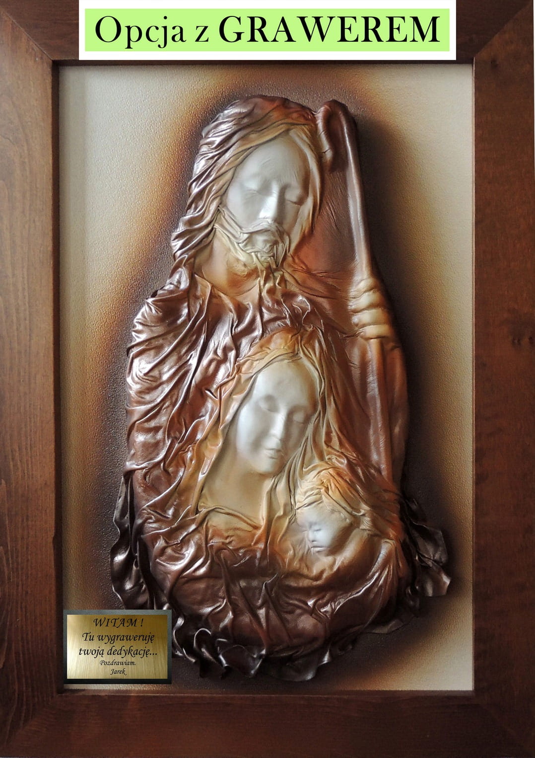 OBRAZ, DREWNIANIA RAMA, ŚWIĘTA RODZINA. SKÓRZANY. NA PREZENT, ŚLUB, ROCZNICĘ. SR5-14