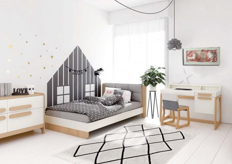 rama: lite drewno, biało-srebrny