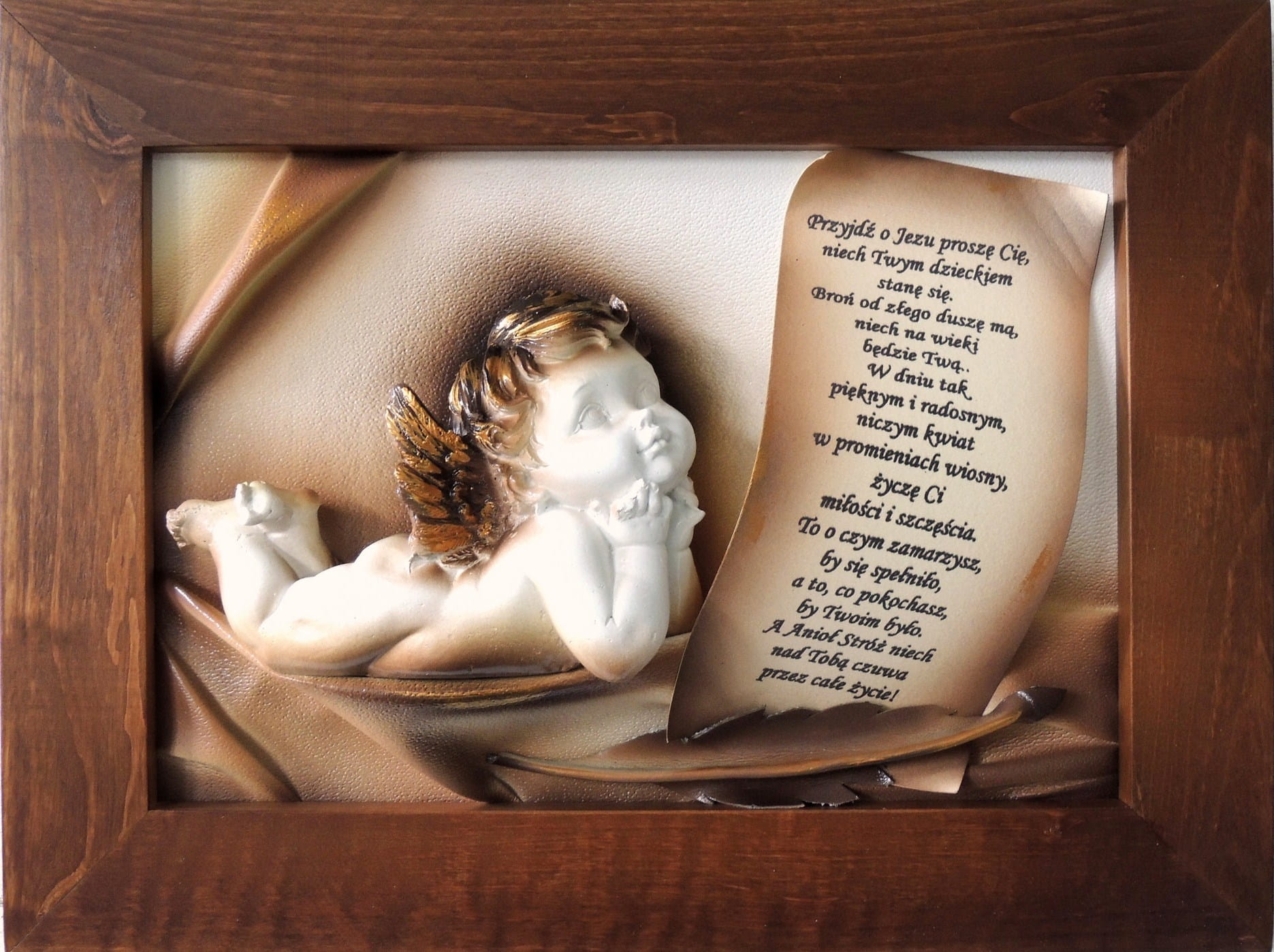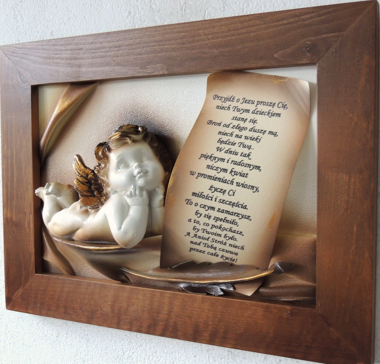 OBRAZ Z ANIOŁKIEM I DEDYKACJĄ - KOMUNIA- CHRZEST - A2-4