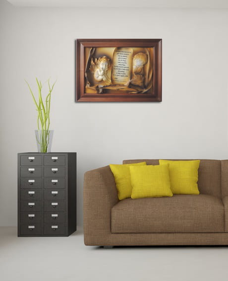 Na ramie obrazu zamieszczamy złotą tabliczkę z grawerem,