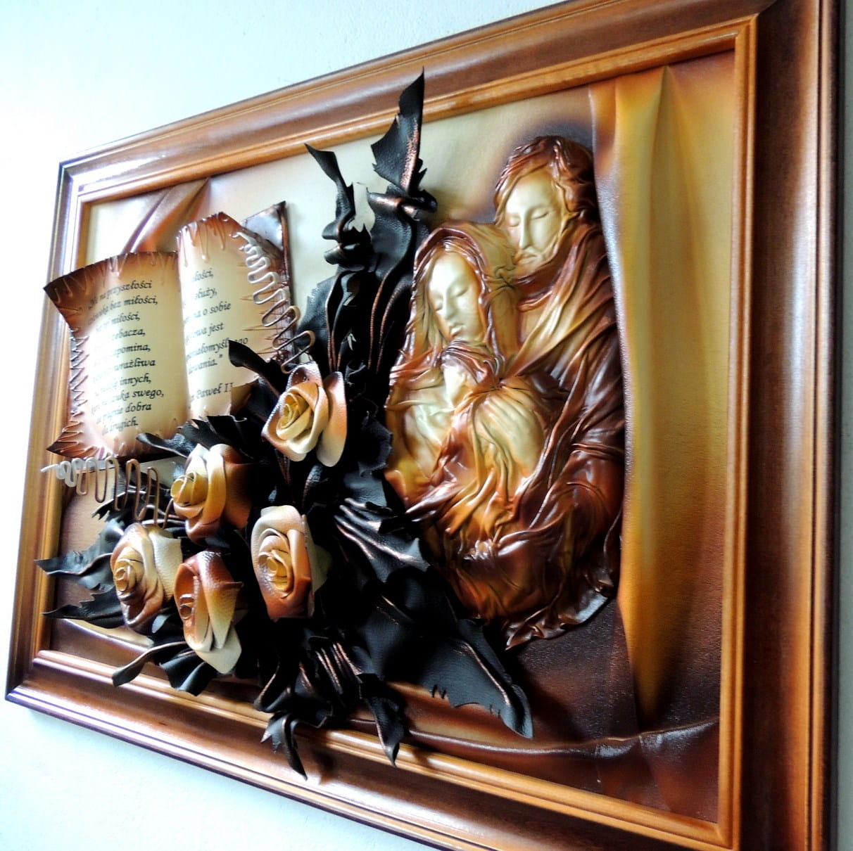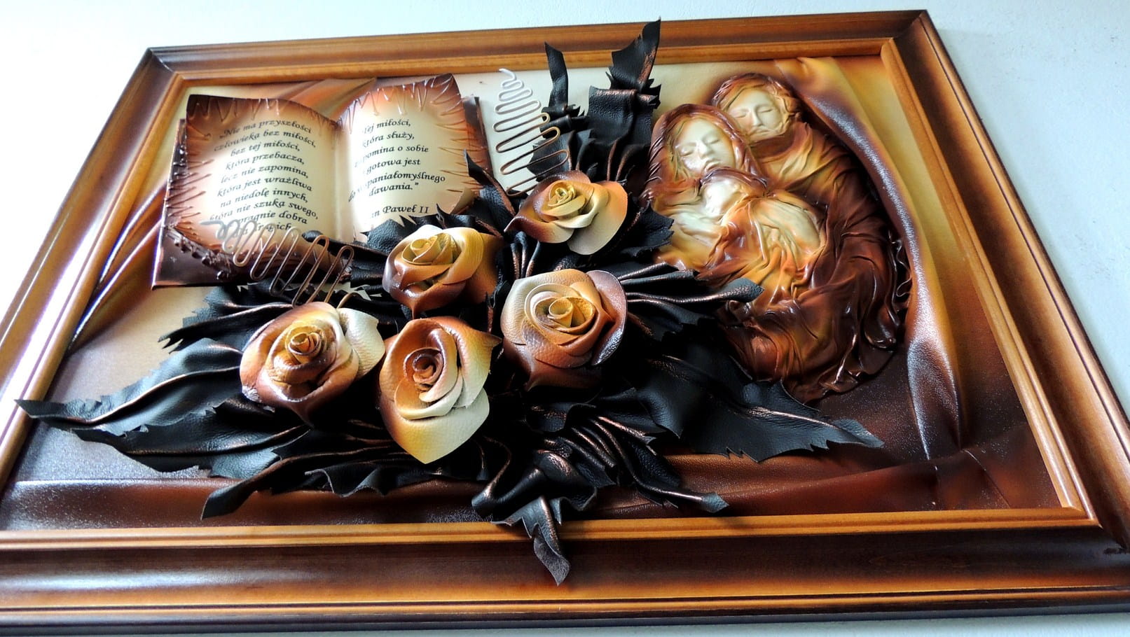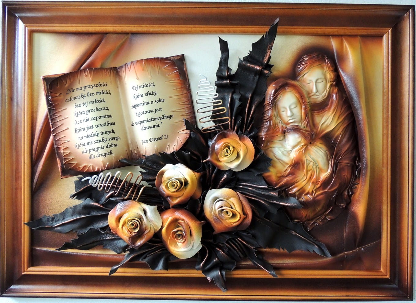 - Obraz z Świętą Rodziną w kolorystyce brąz - bronzo - skóra naturalna - SR5-19