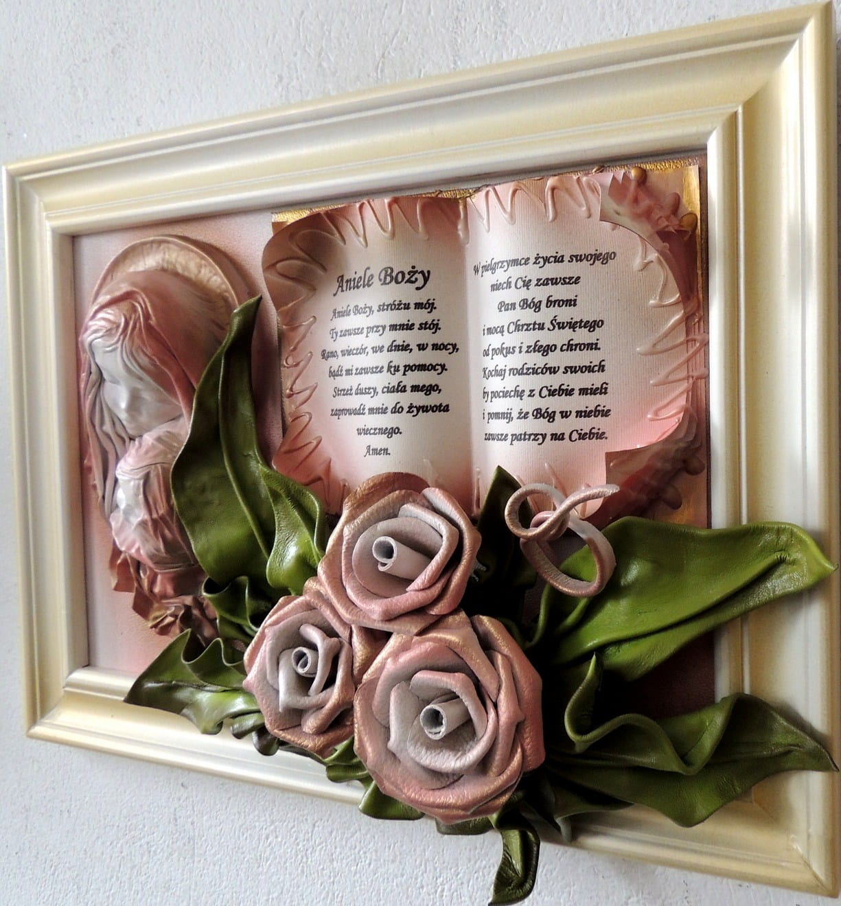 ORYGINALNA PAMIĄTKA CHRZEST, KOMUNIA,URODZINY. WŁASNA DEDYKACJA.
