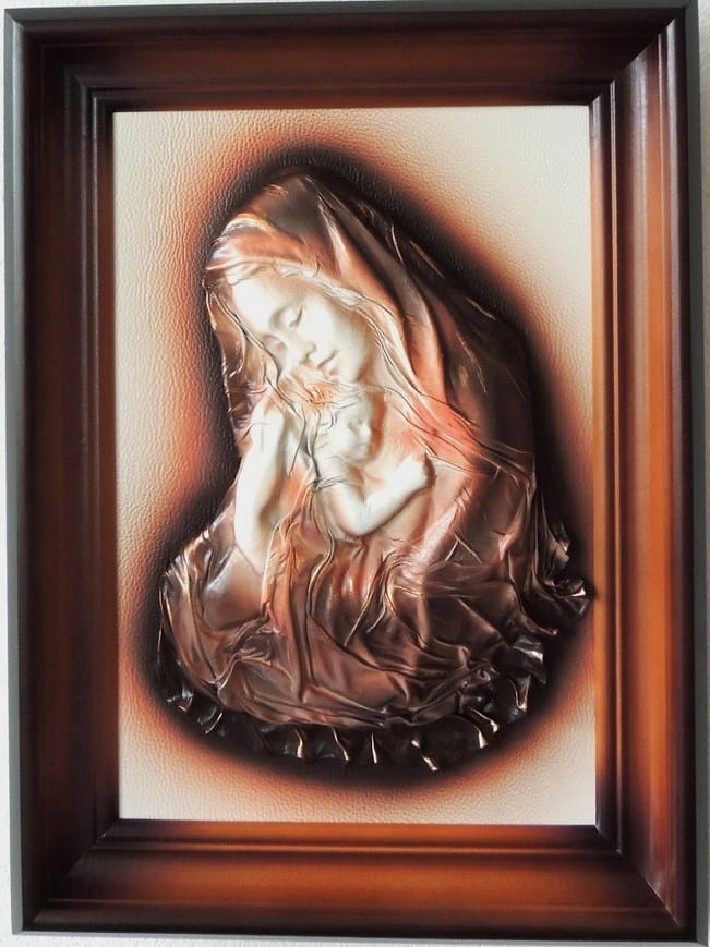 - Obraz z Świętą Rodziną w kolorystyce brąz - bronzo - skóra naturalna - SR5-19