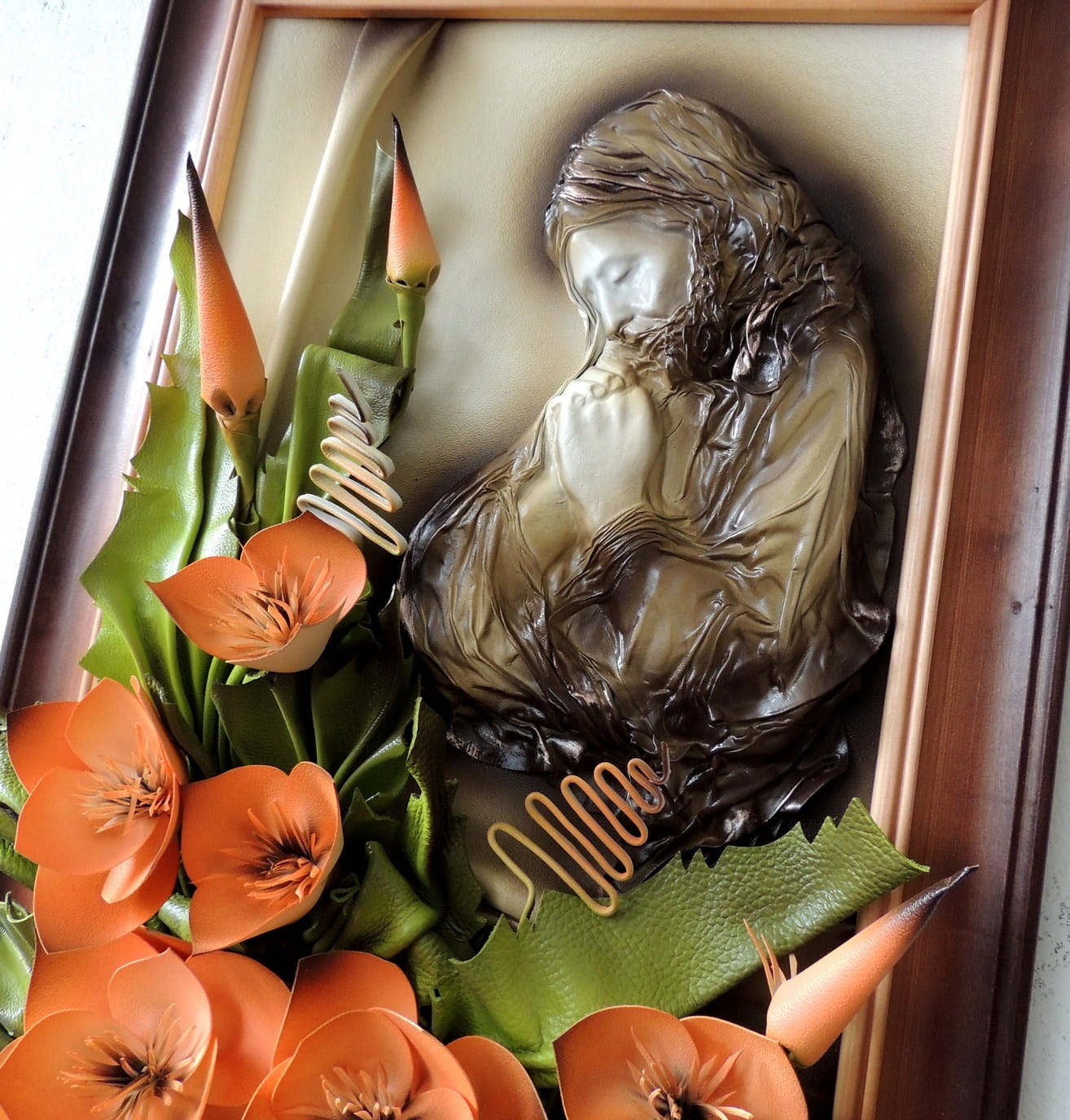 - Obraz z Świętą Rodziną w kolorystyce brąz - bronzo - skóra naturalna - SR5-19