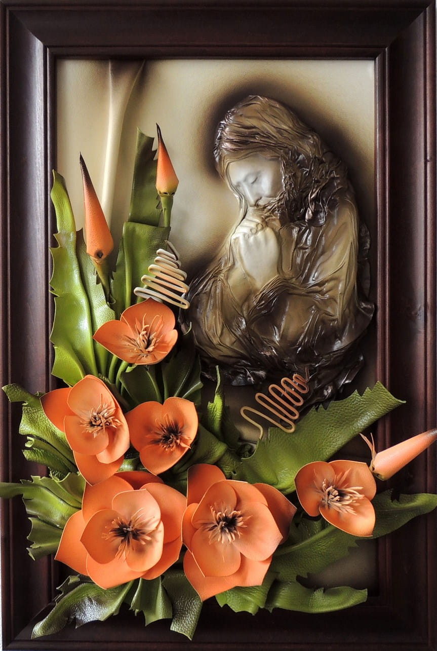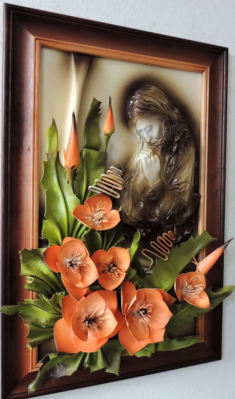 OBRAZ ZE SKÓRY - JEZUS MODLĄCY - JM7-1