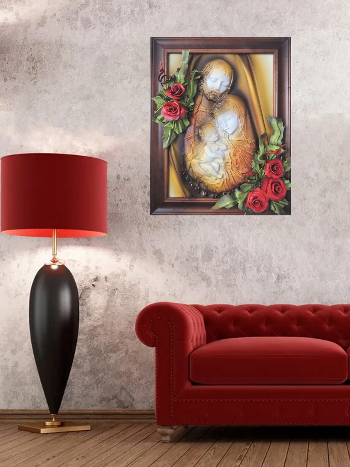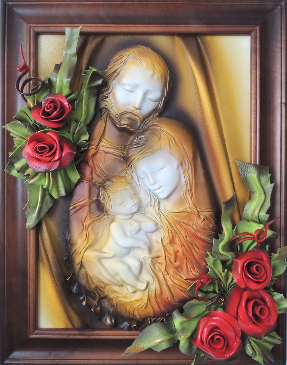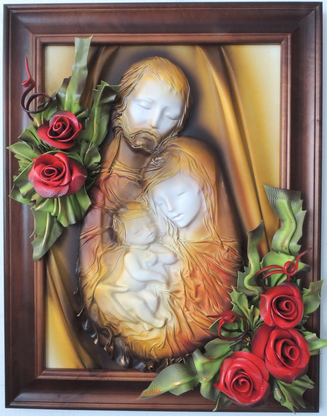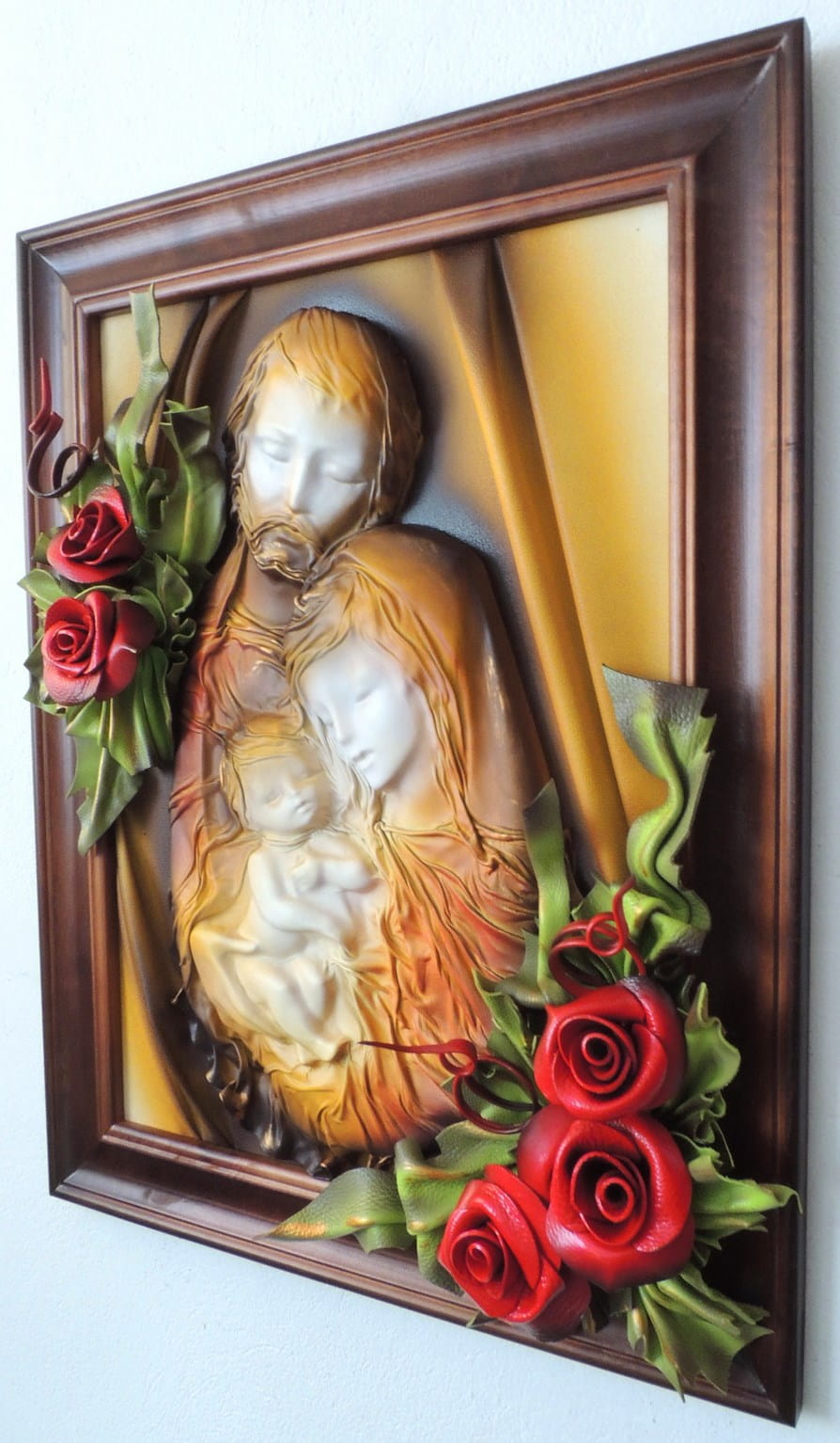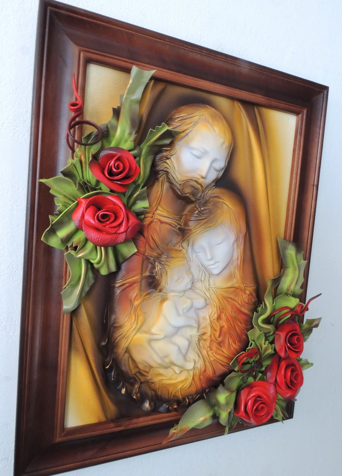 Obraz 3d z dużą płaskorzeźbą Świętej Rodziny - Rękodzieło na prezent Ślubny - Jubileusz - Podziękowanie