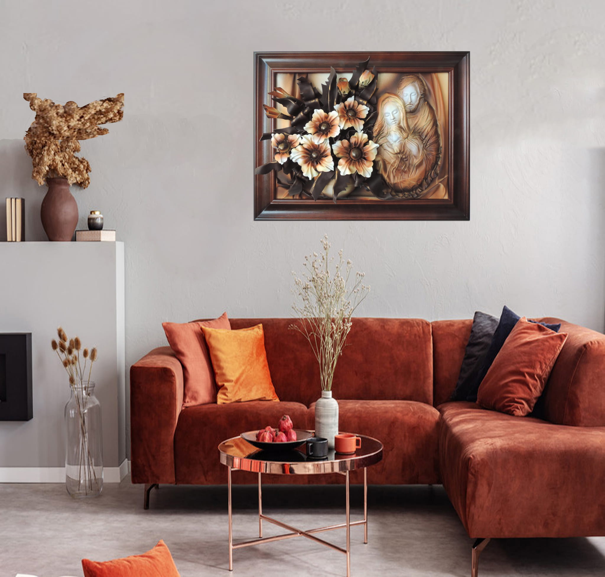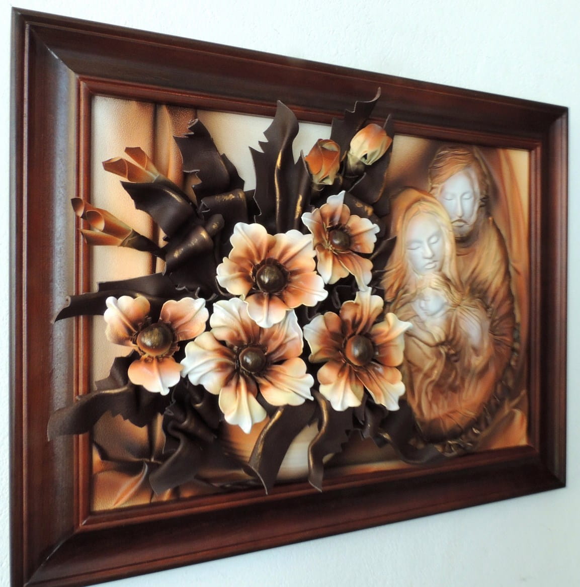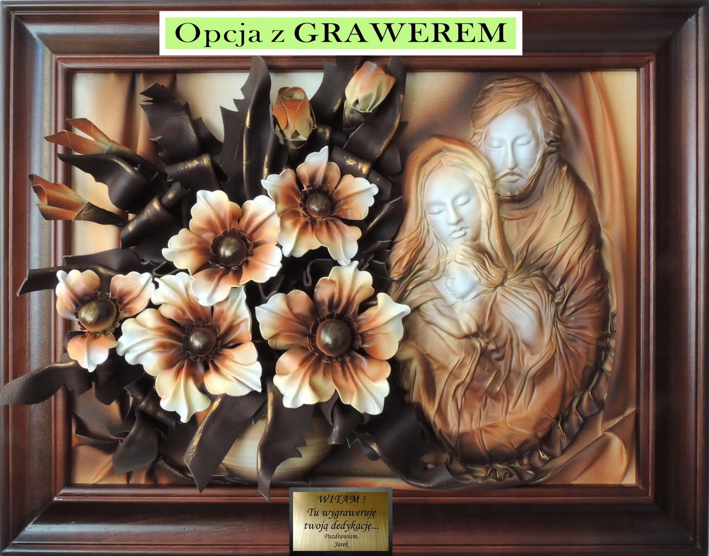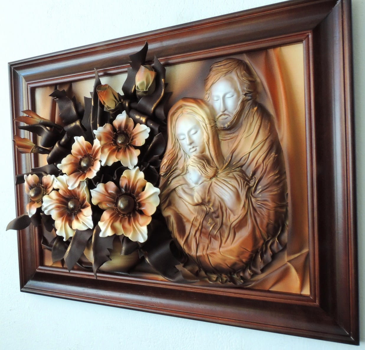 Obraz 3d z płaskorzeźbą Świętej Rodziny i kwiatami na prezent Ślubny, Jubileusz, Podziękowanie - K6SR-2