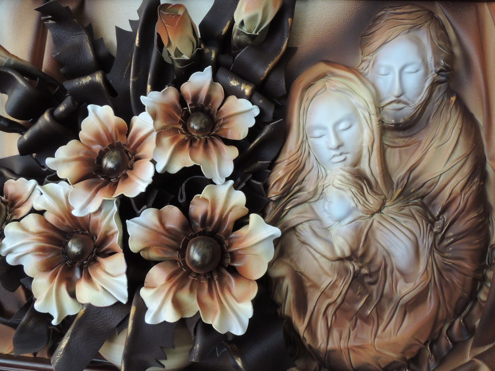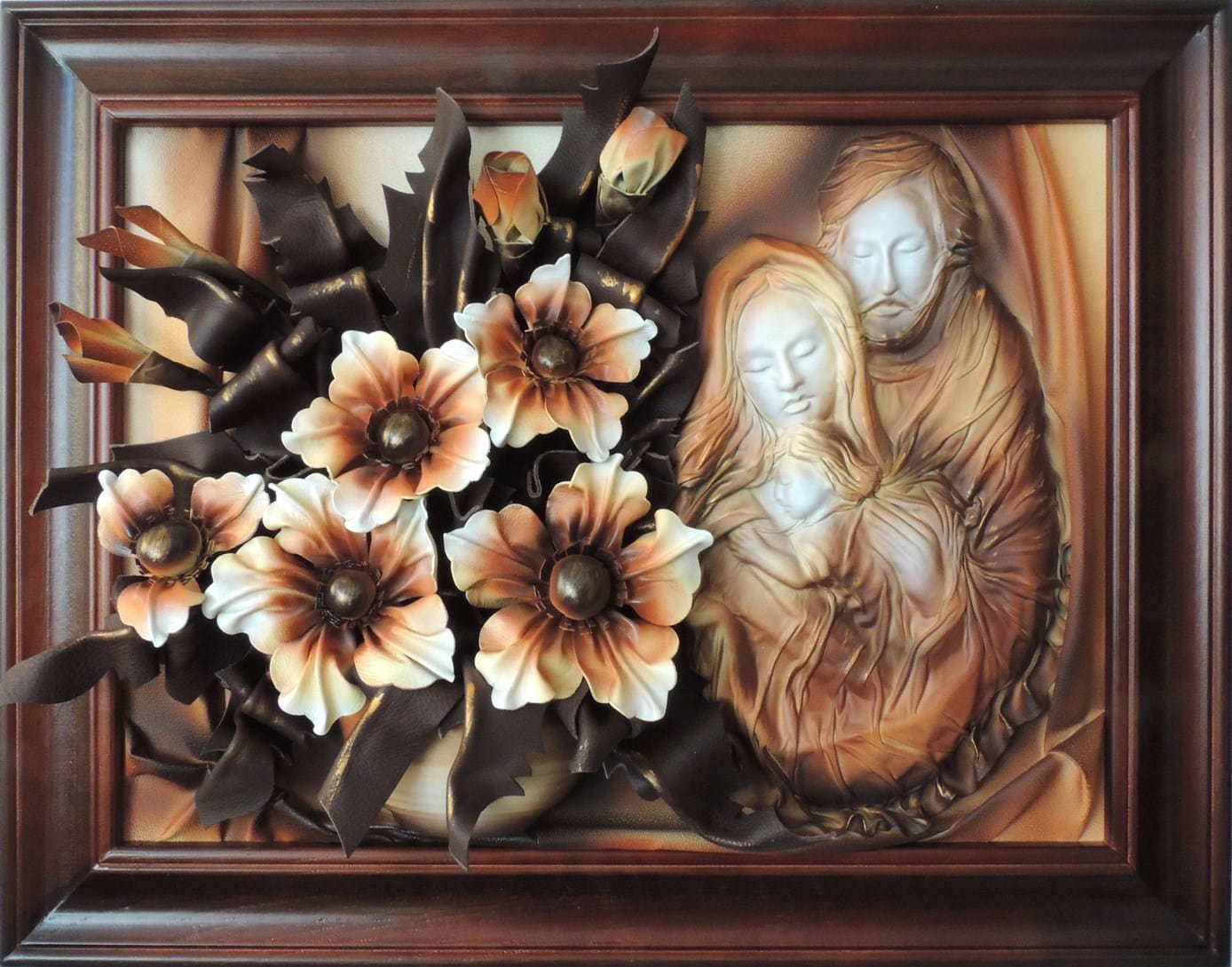 - Obraz z Świętą Rodziną w kolorystyce brąz - bronzo - skóra naturalna - SR5-19
