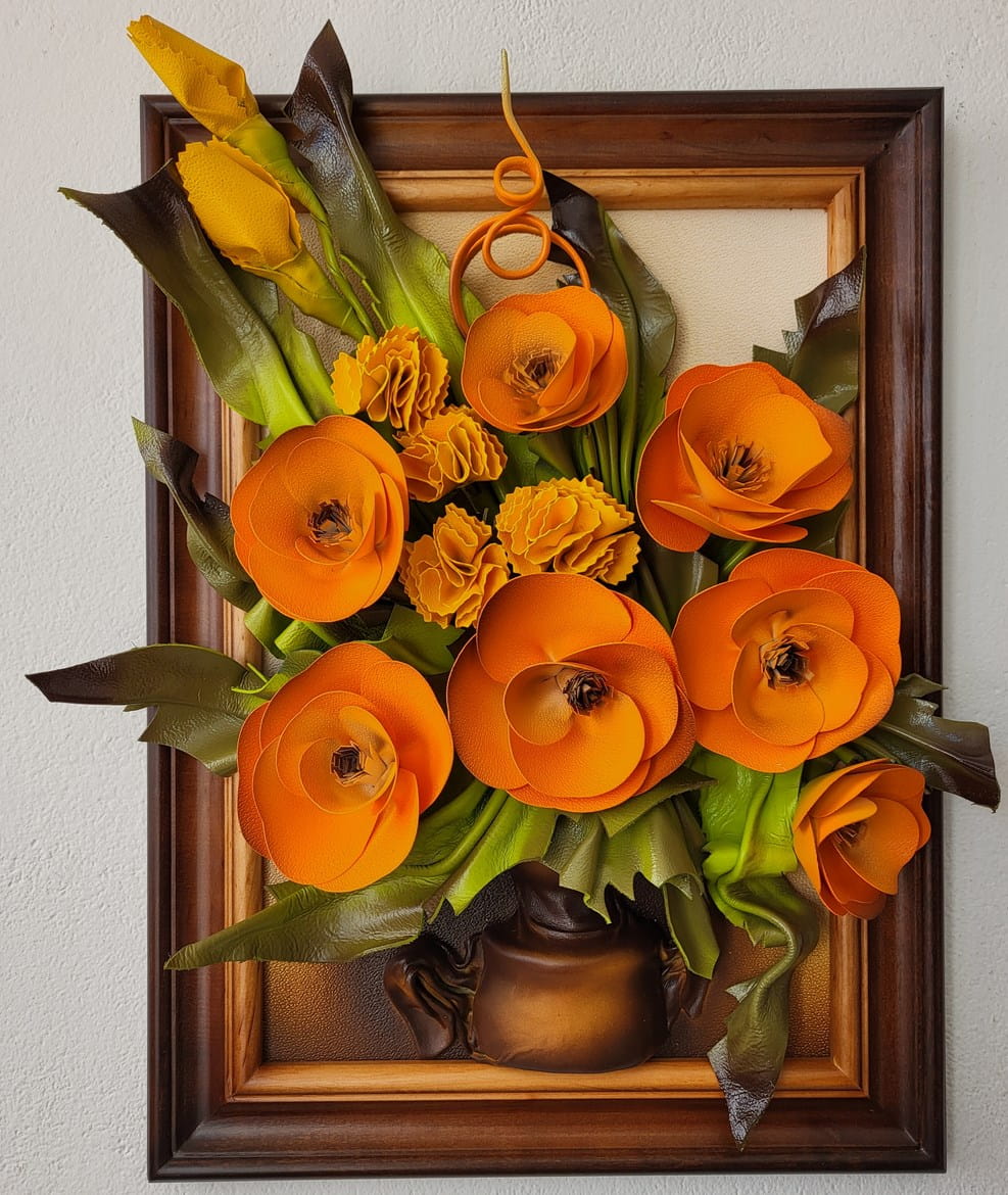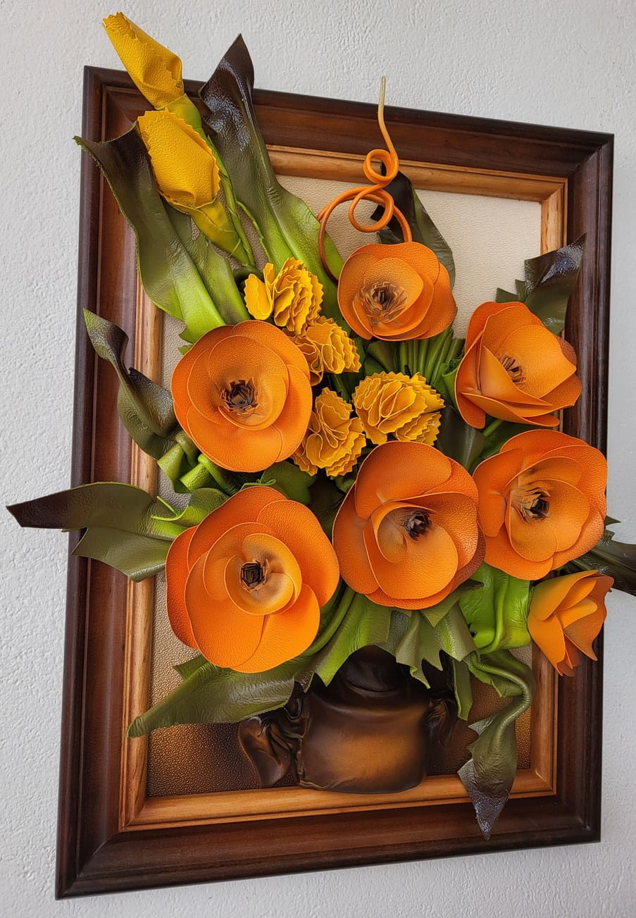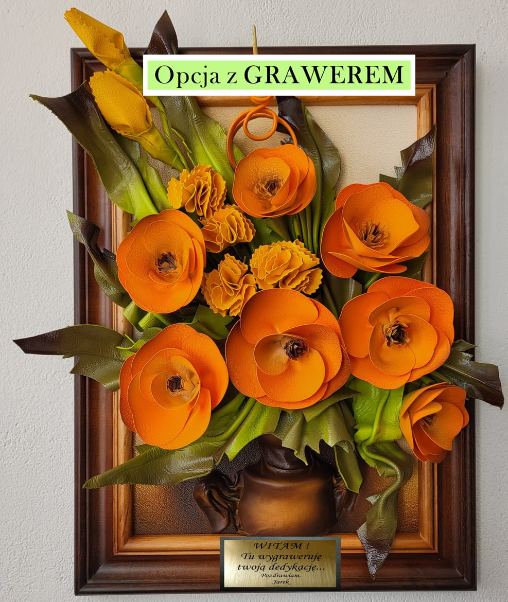 Obraz z kwiatami ze skóry na prezent
