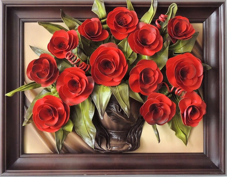 OBRAZ ZE SKÓRY - CZERWONE RÓŻE
