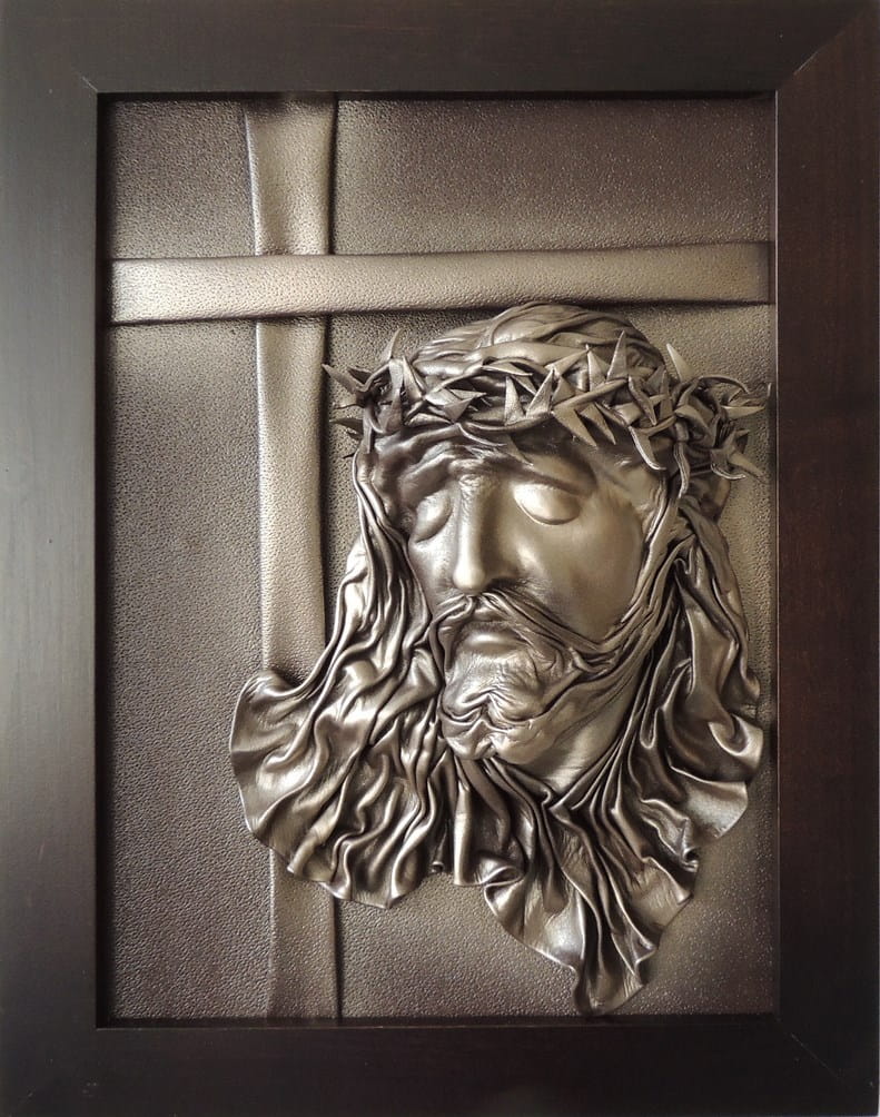 - Obraz z Świętą Rodziną w kolorystyce brąz - bronzo - skóra naturalna - SR5-19
