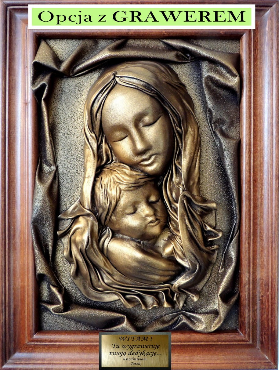Obraz Matka Boska ze skóry w drewnianej ramie koloru złoty dąb - s3-3