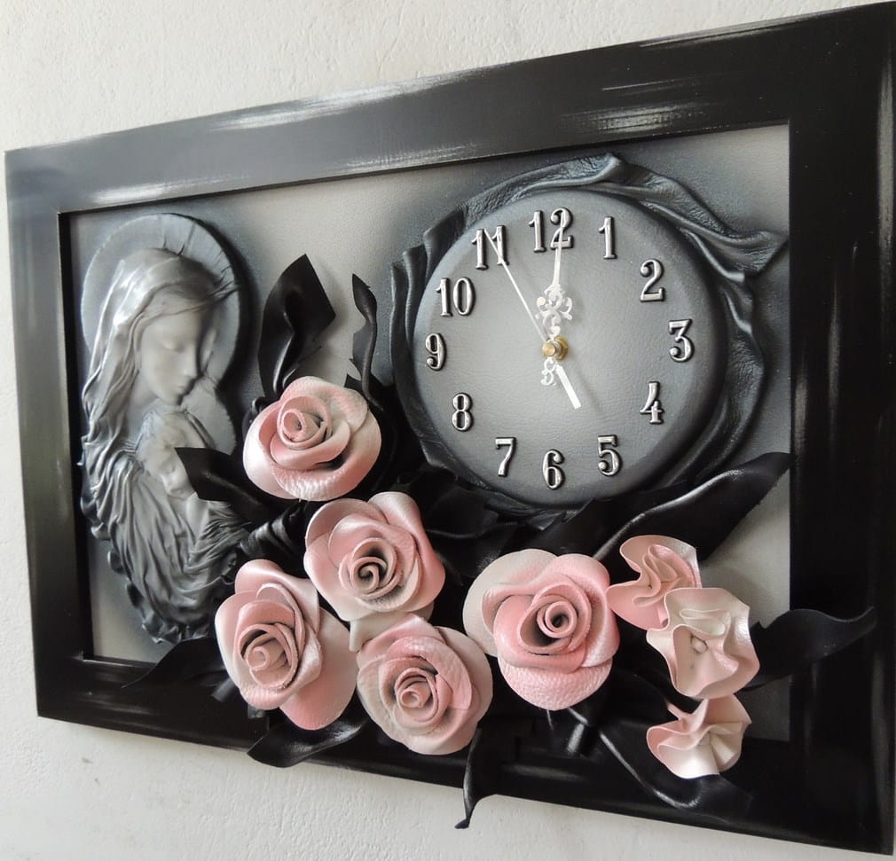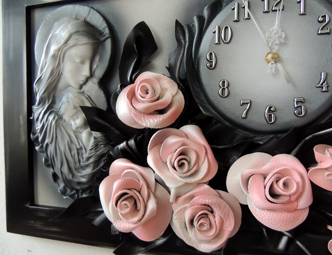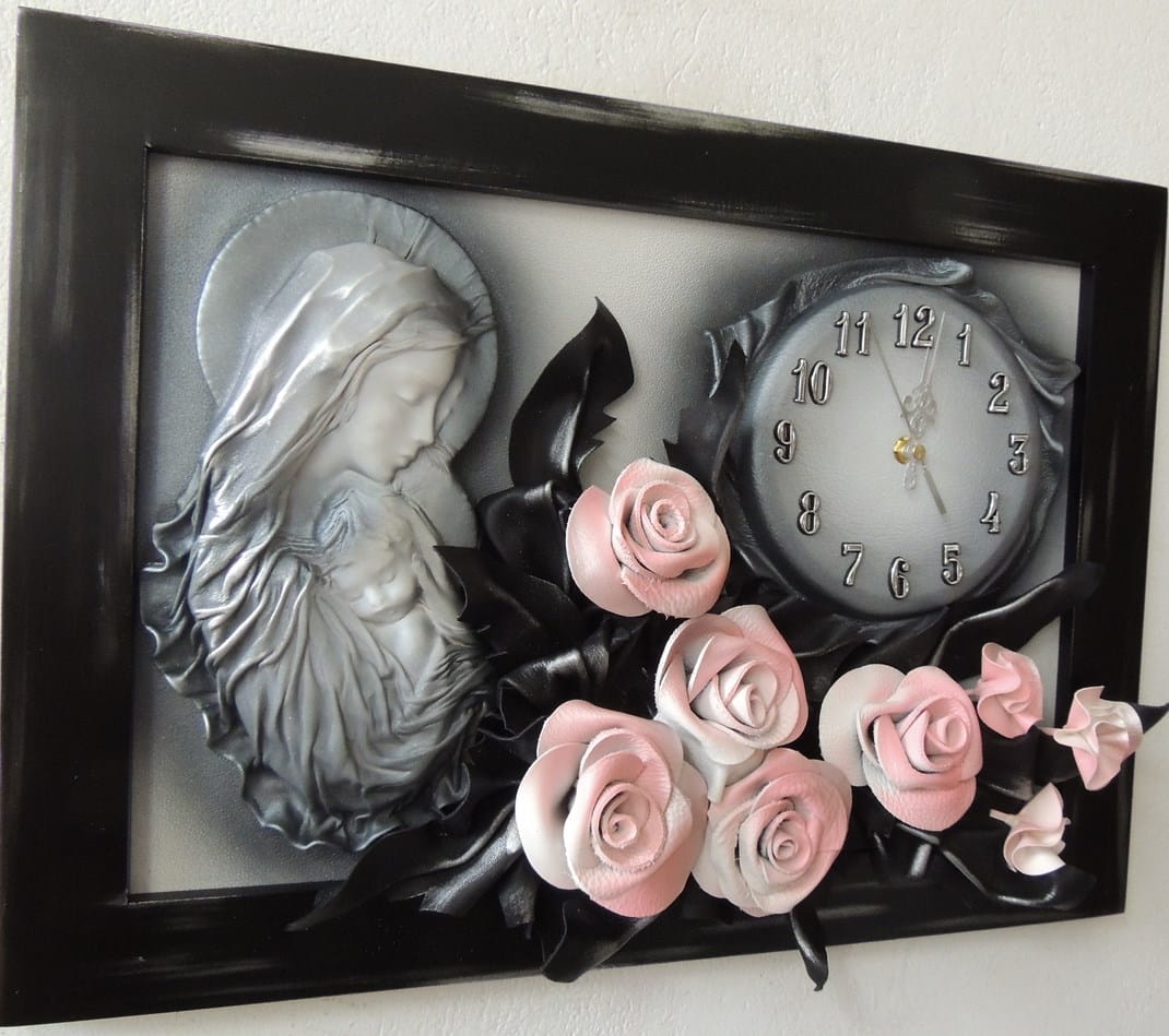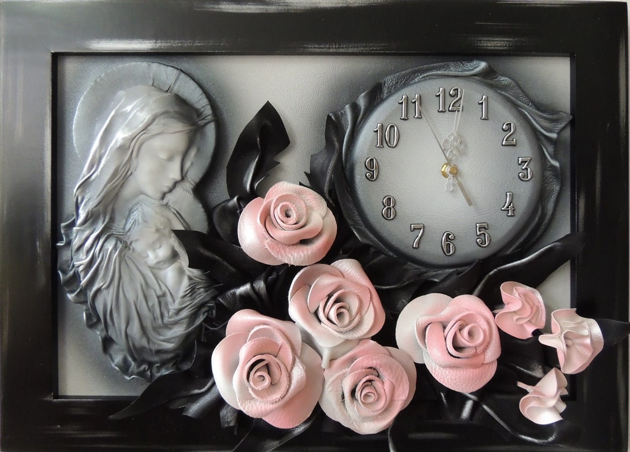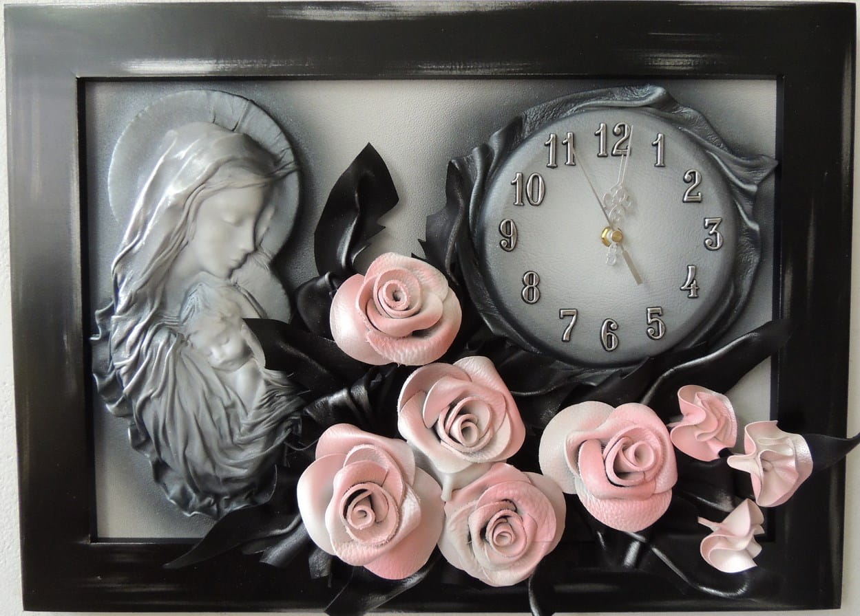 Obraz Matki Boskiej Maryi z bukietem róż + zegar PREZENT ślub JUBILEUSZ podziekowanie - K5SZ-3