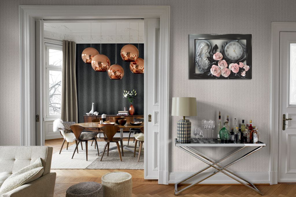 - Nowoczesny obraz na PODZIĘKOWANIE DLA RODZICÓW - kwiaty + zegar - K8D-7