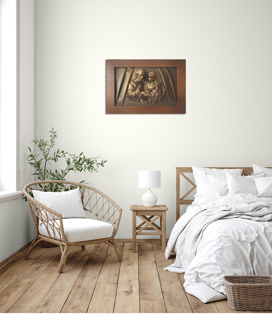 - Obraz z Świętą Rodziną w kolorystyce brąz - bronzo - skóra naturalna - SR5-19