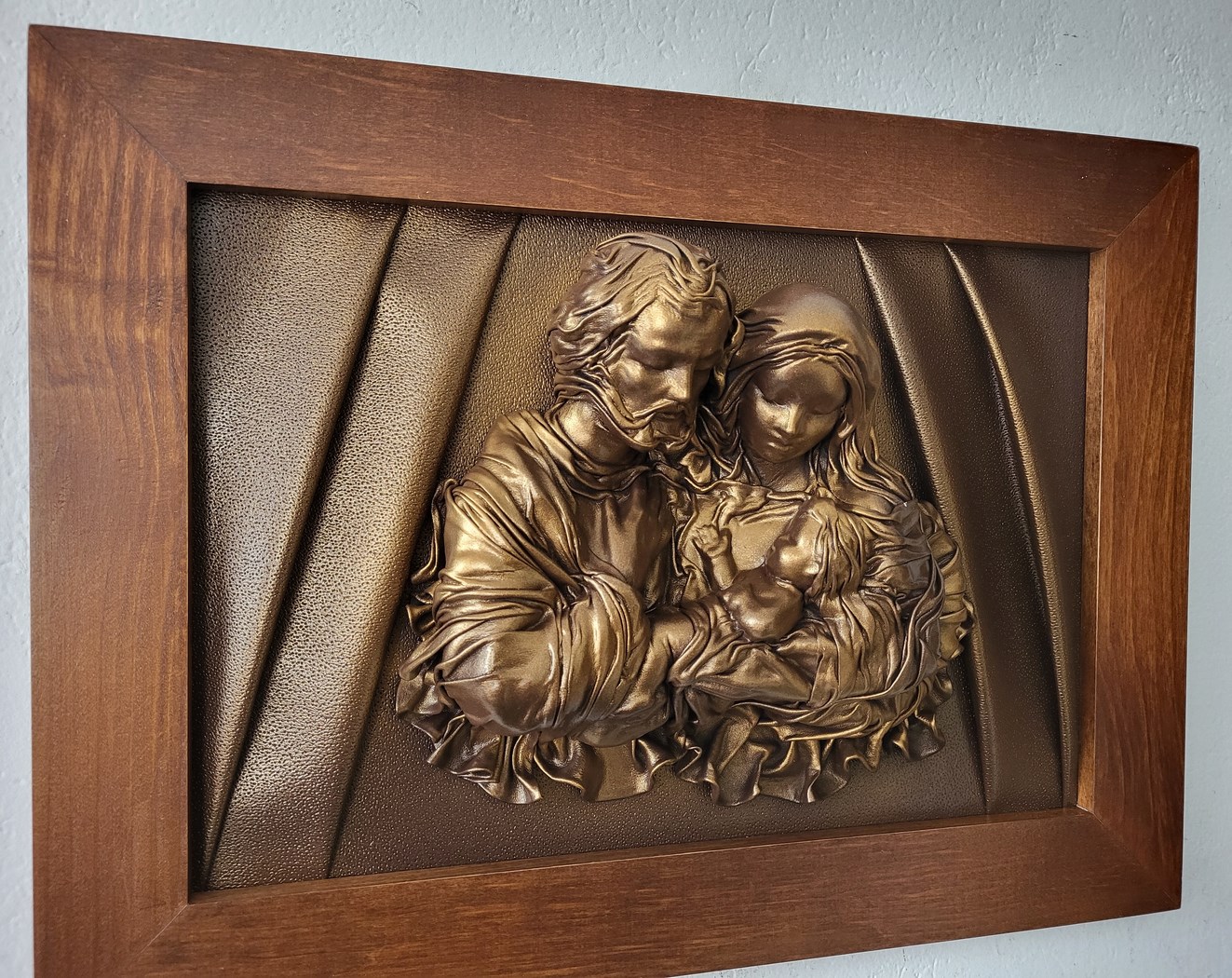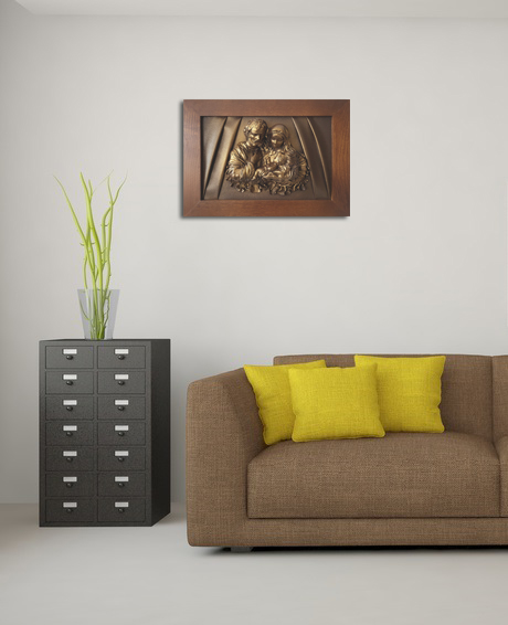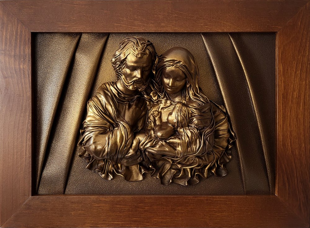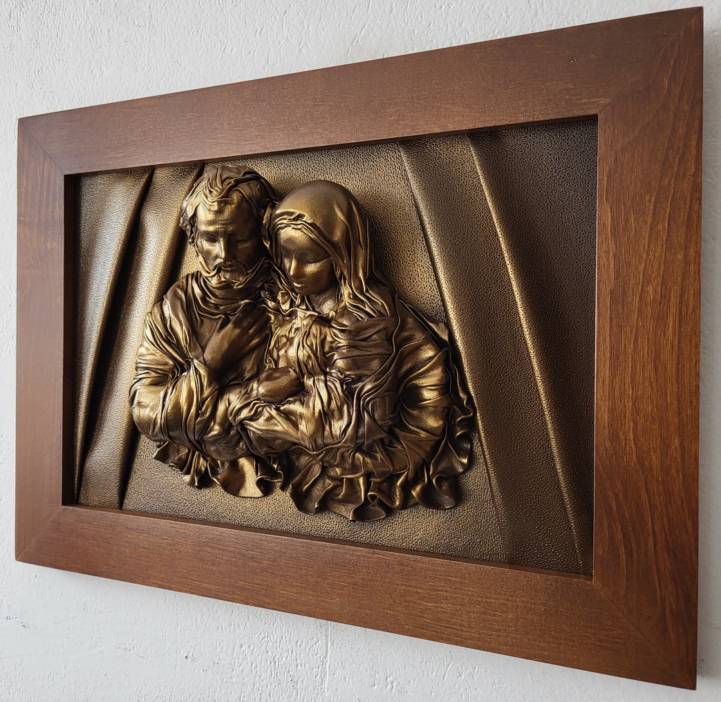 Obraz ze skóry z płaskorzeźbą Świętej Rodziny