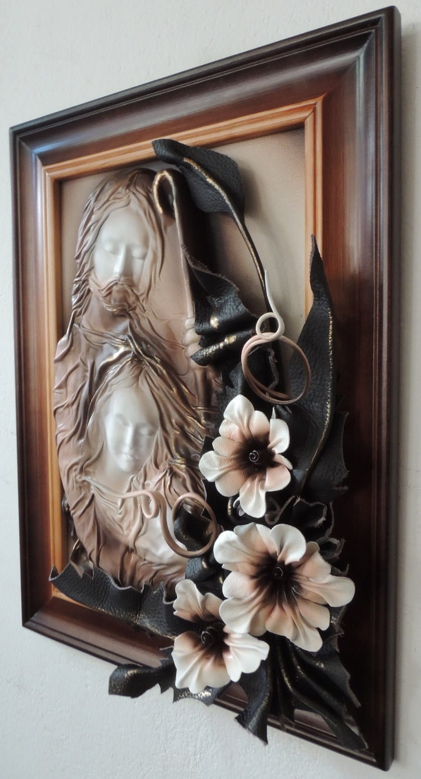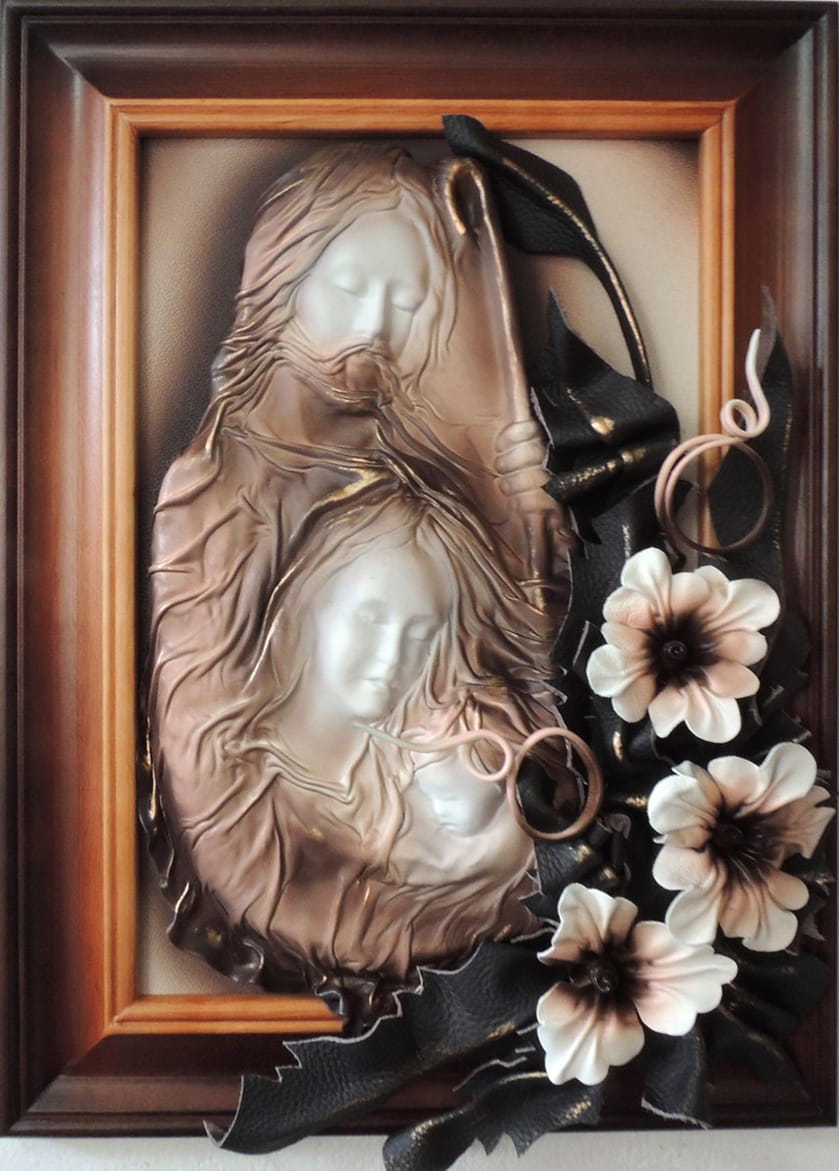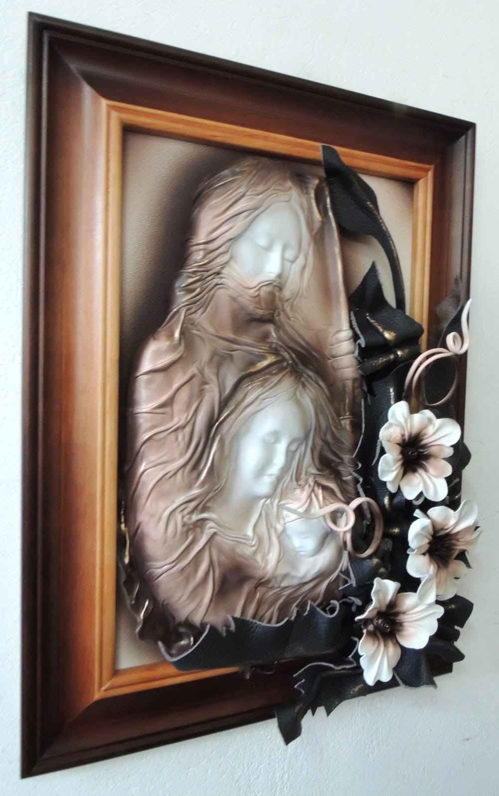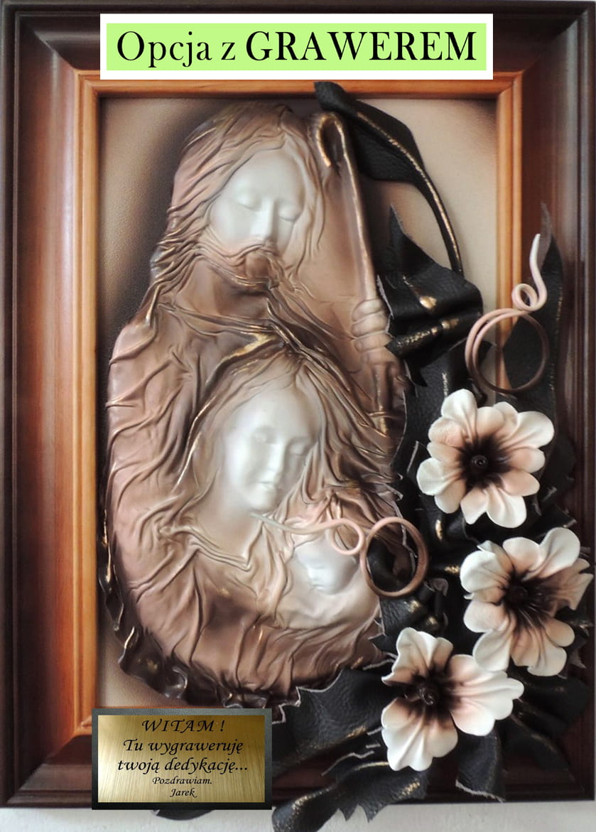 - Obraz z Świętą Rodziną w kolorystyce brąz - bronzo - skóra naturalna - SR5-19
