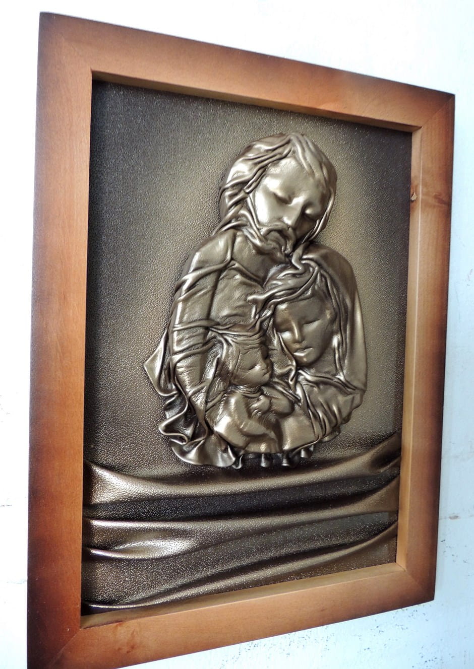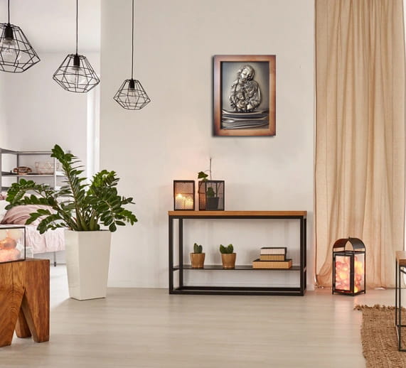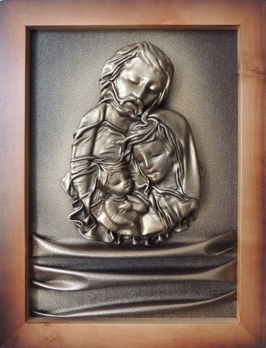 - Obraz z Świętą Rodziną w kolorystyce brąz - bronzo - skóra naturalna - SR5-19