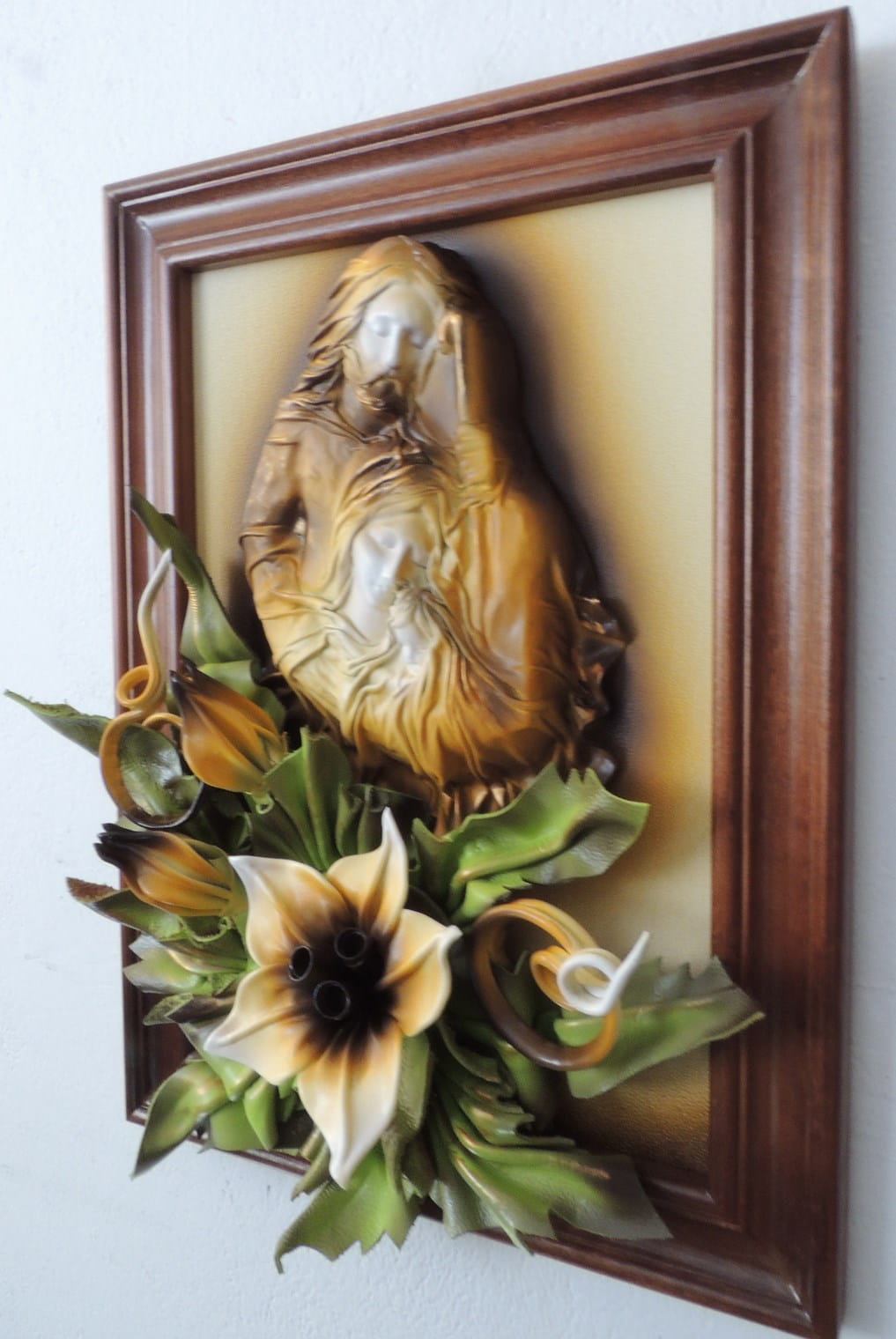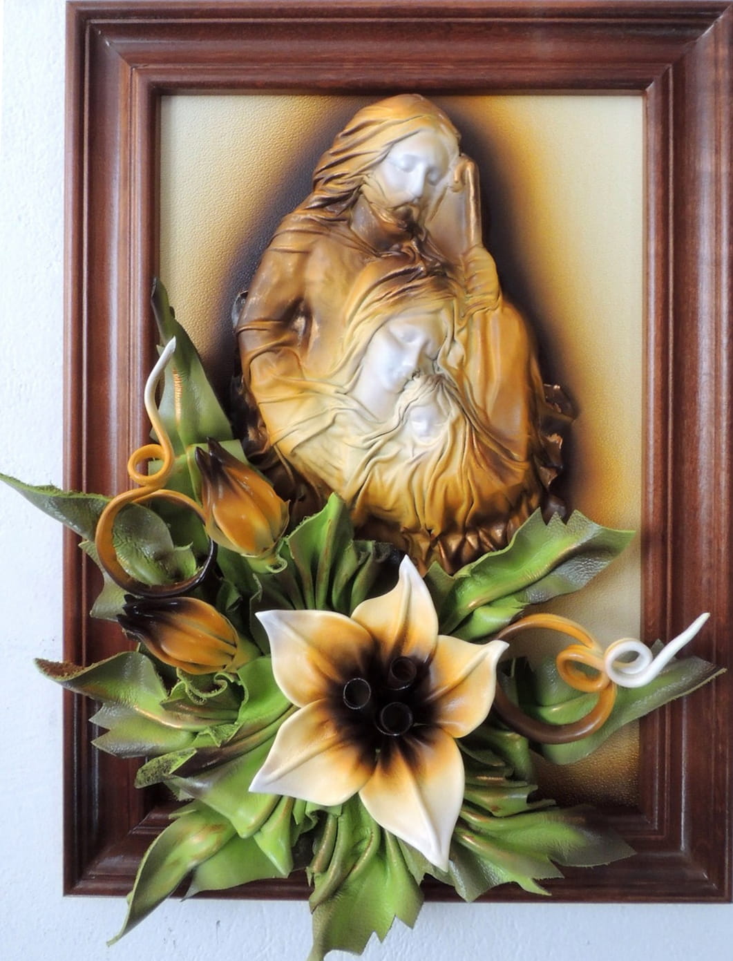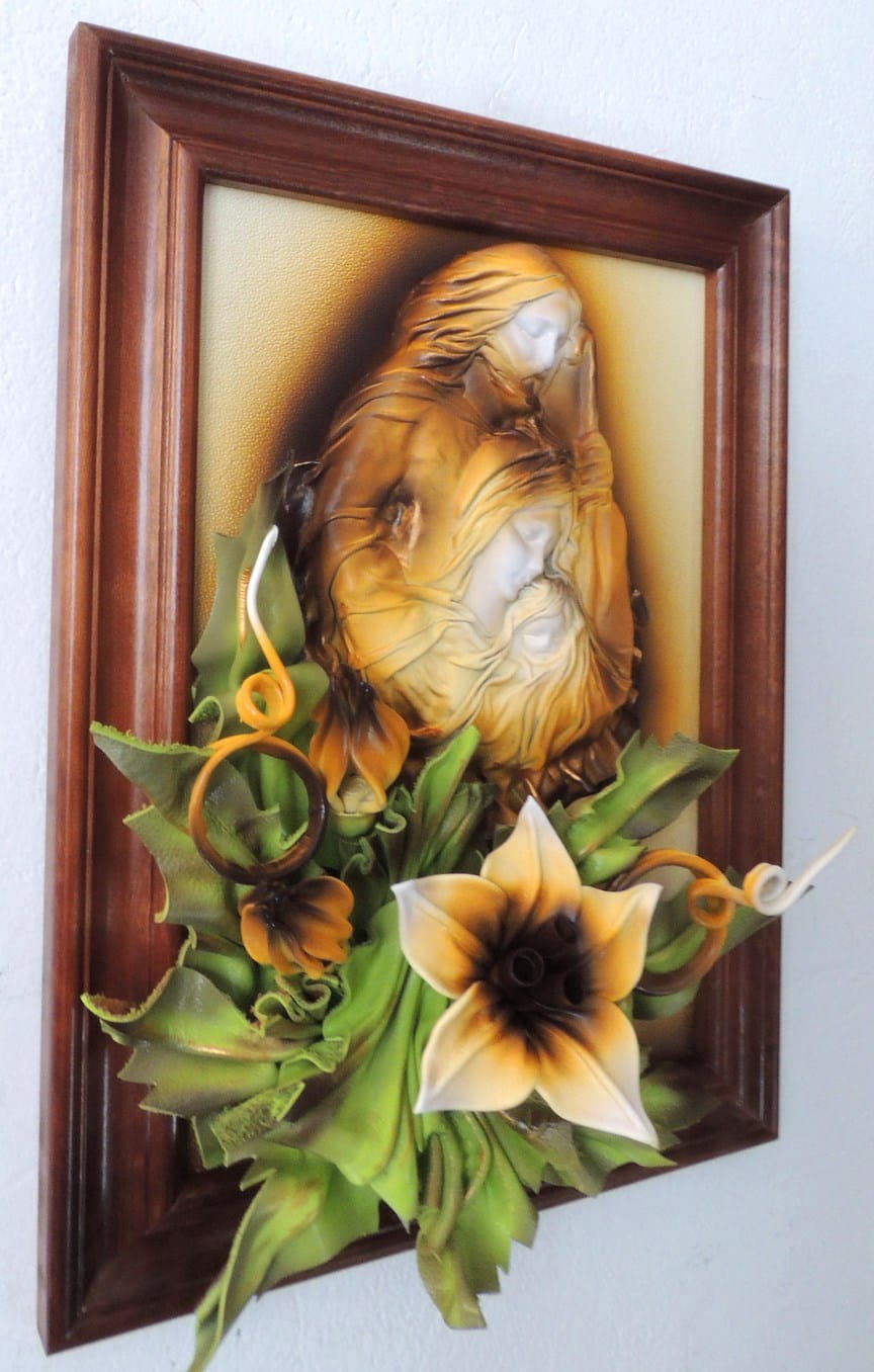 - Obraz z Świętą Rodziną w kolorystyce brąz - bronzo - skóra naturalna - SR5-19