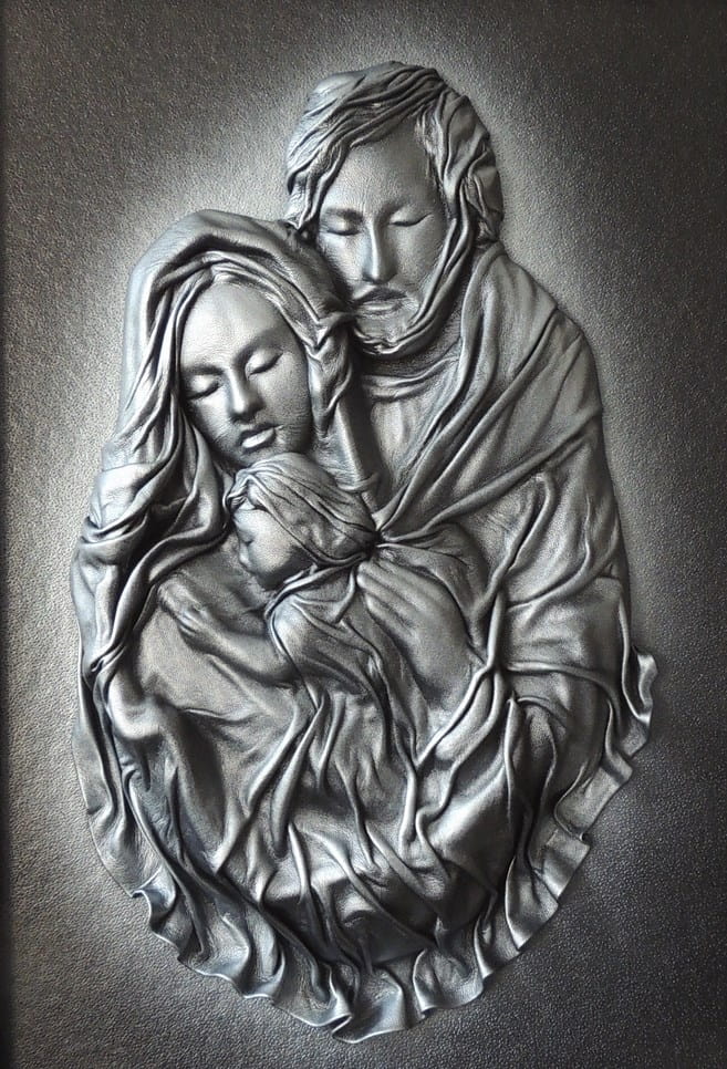 Obraz Święta Rodzina srebrna w czarnej ramie - Rękodzieło ze skóry - SR5-18
