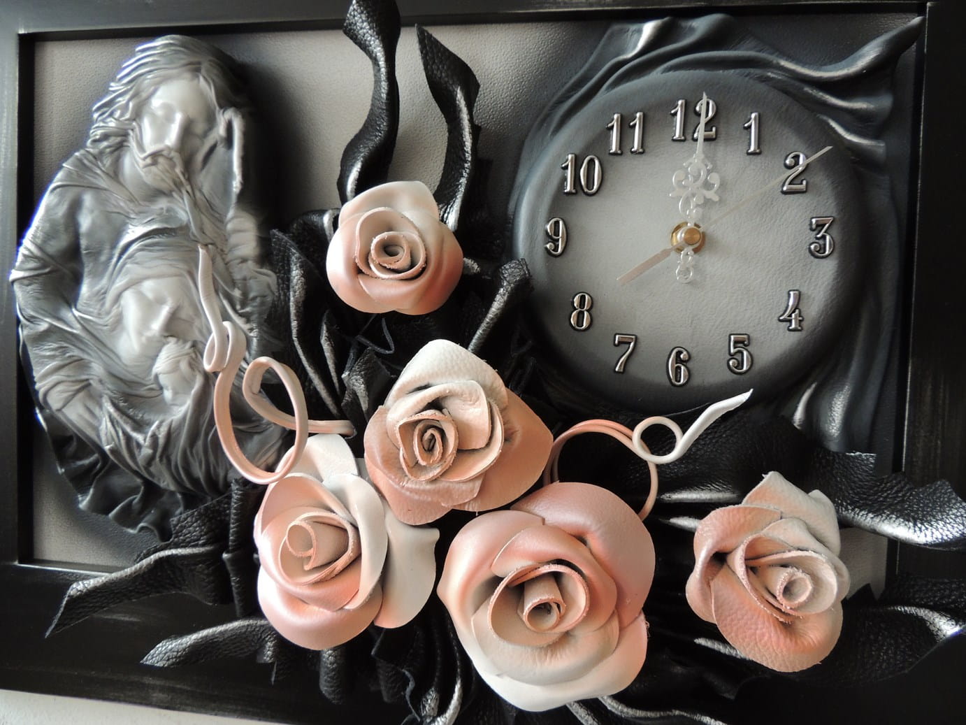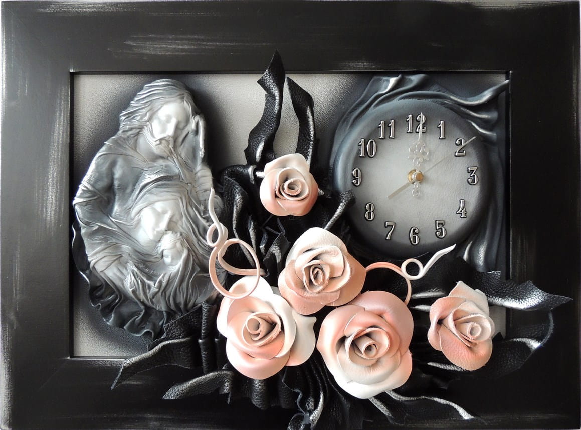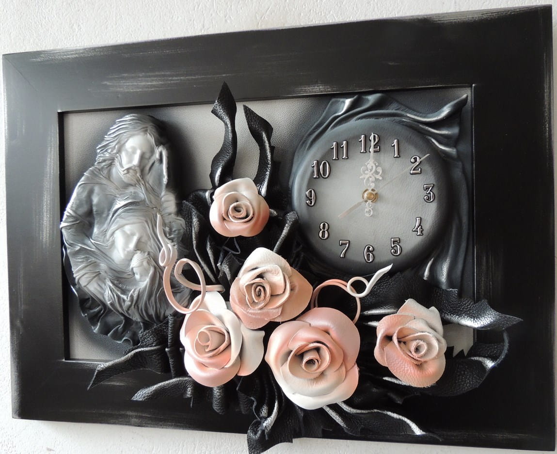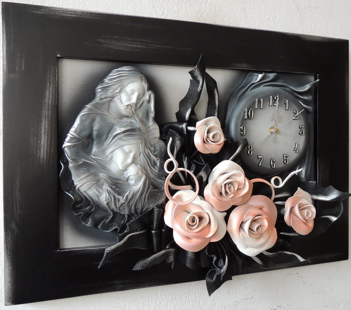 Obraz Święta Rodzina z bukietem róż + zegar PREZENT ślub JUBILEUSZ podziekowanie - K5SRZ-3