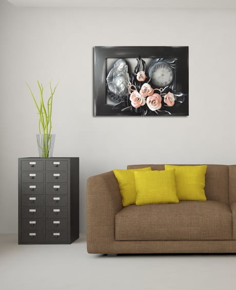 - Nowoczesny obraz na PODZIĘKOWANIE DLA RODZICÓW - kwiaty + zegar - K8D-7