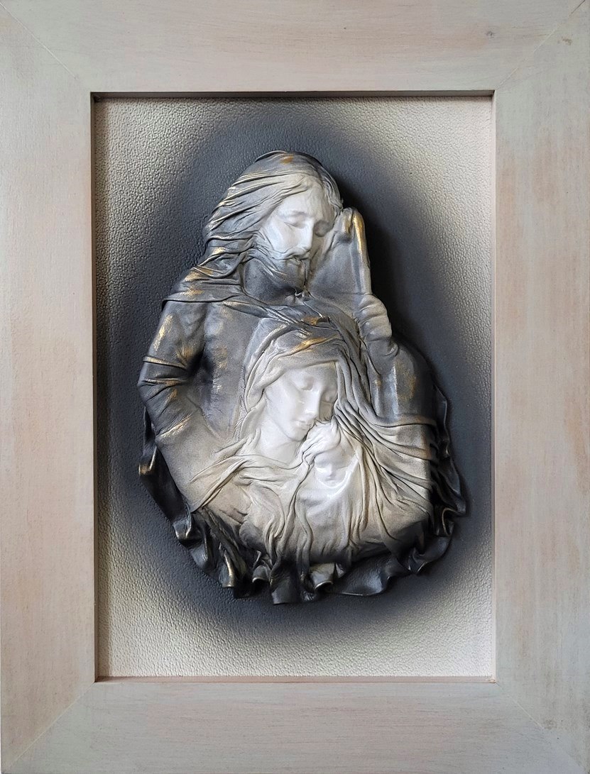 - Obraz z Świętą Rodziną w kolorystyce brąz - bronzo - skóra naturalna - SR5-19